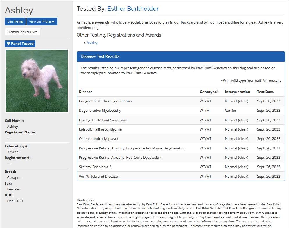 Ashley is a sweet girl who is very social. She loves to play in our backyard and will do most anything for a treat. Ashley is a very obedient dog.