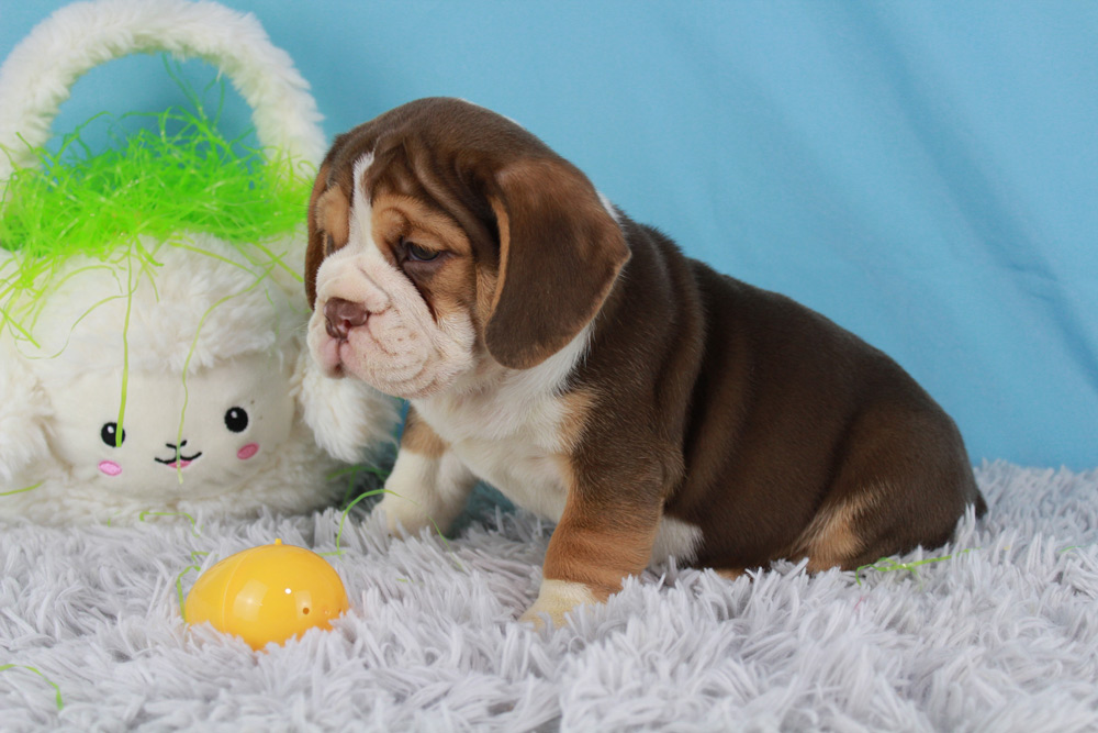 Audrey is a sweet and loving little puppy. She is more reserved than her siblings and is not the first one to explore!