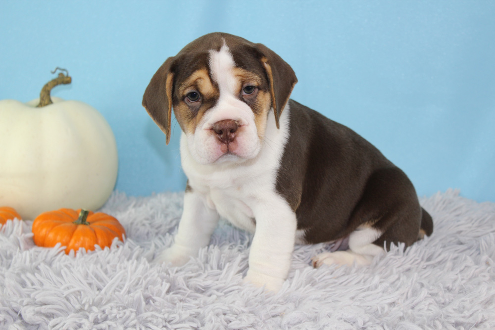 The natural born leader of his siblings, Diesel is a happy dude that is content playing on his own or in the thick of all the action. His stubby tail wags with such excitement as he’s investigating the plethora of awesome around him that his little bum shakes too! We love this boy’s friendliness and affection- a real swooner to all he meets. He can quickly work the room once he’s in the mood to pull away from his toys. Expect this companion to be resilient, affectionate, observant, and a tad stubborn! If you’re looking for a sidekick that’s going to make you feel like you’ve gained some clout on the streets- Diesel is the boy for you!