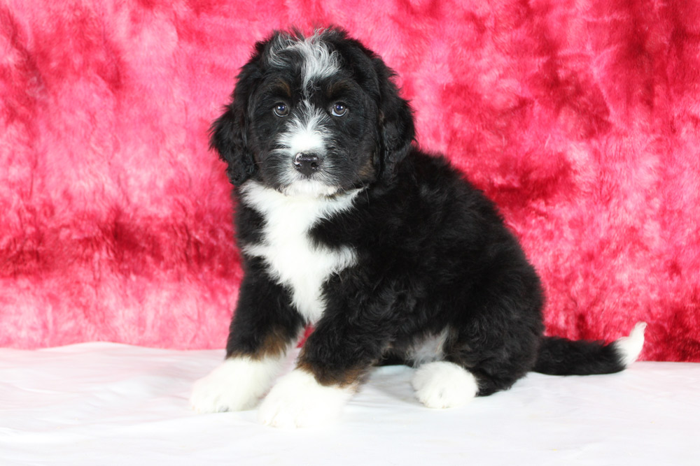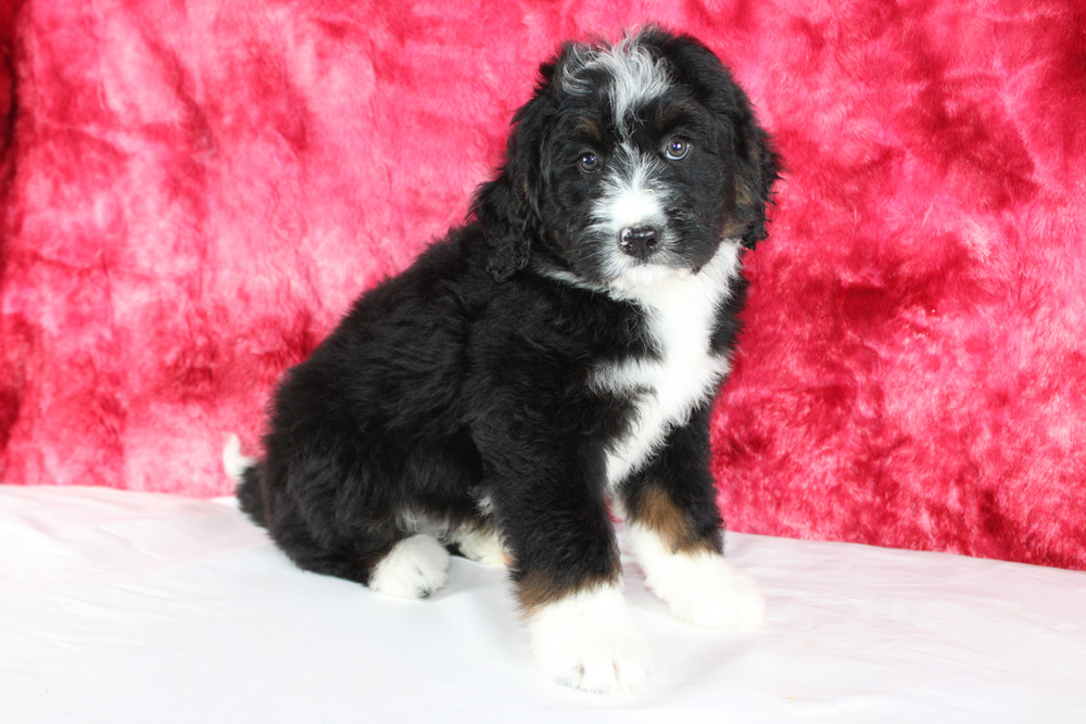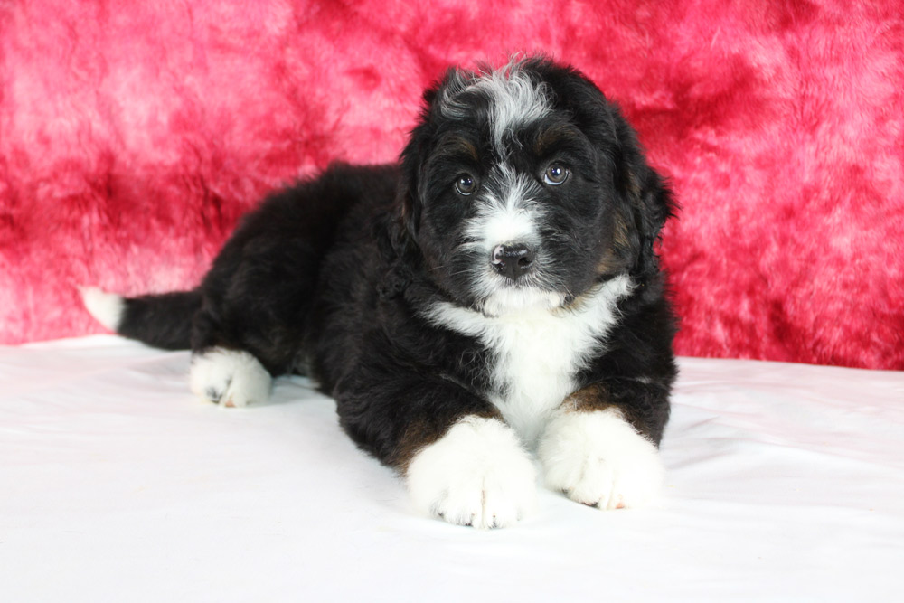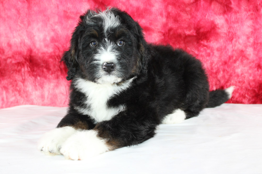 Literally defining the happy go lucky vibes that the Bernese are known for- Drax would be a top contender for a first time puppy or experienced canine loving humans who have never experienced the magic of a standard Bernedoodle! Our boy is submissive and too care-free to lead or try and exert any type of machismo behavior! Drax simply loves to participate in whatever everyone else is up to or sit and smile and watch the world go by! Because of his sweet personality that is universal and loved by all of his siblings as well as us here at the kennel- we feel our boy could be a solid match to a variety of forever families with different lifestyles and living situations! If you are looking for the quintessential Bernedoodle experience- Drax is the dog for you!