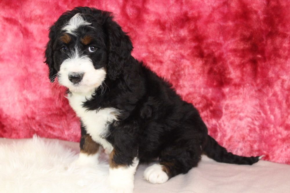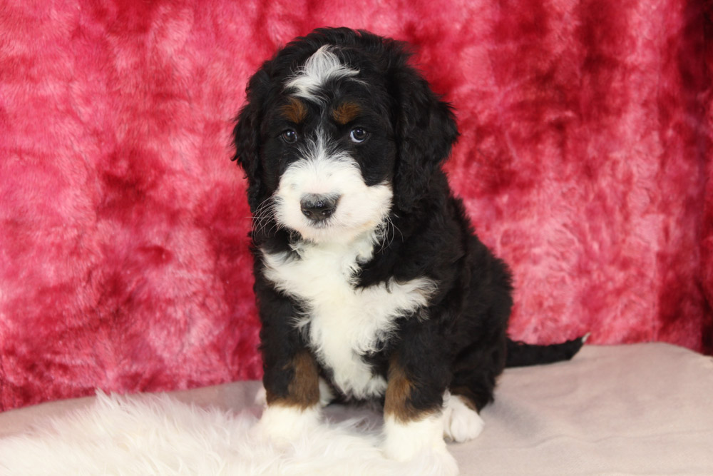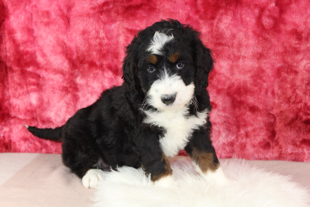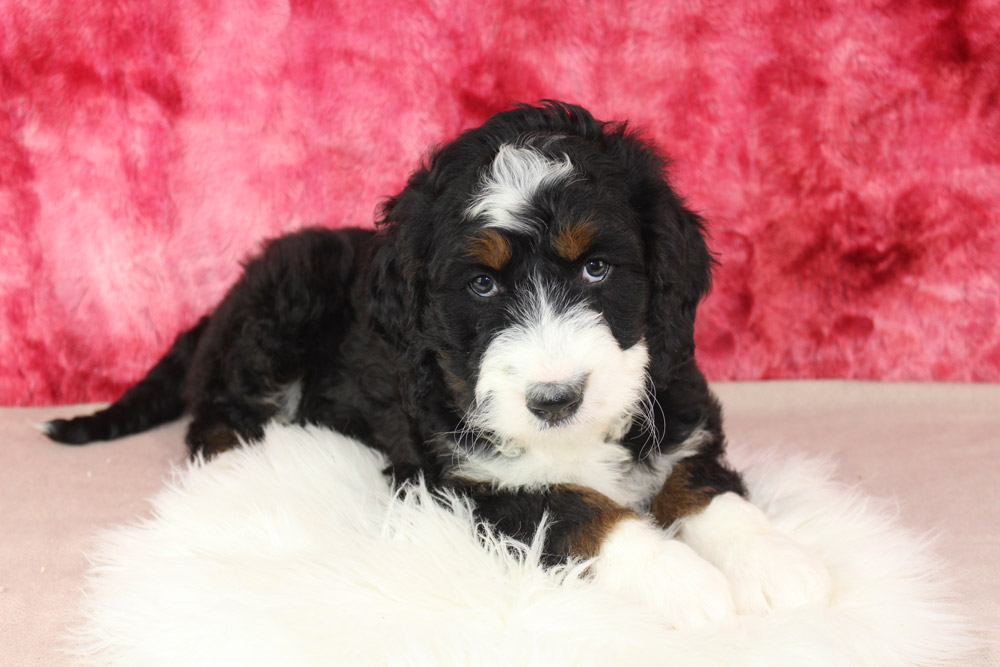 If the thought of a wild energetic puppy is keeping you from experiencing a new canine connection, we have just the girl for you! Finley is super chillaxed. Even when she gets the curiosity to play, her saunter around the room is short lived before she finds another place to take a nap or watch the others play from a different angle. It seems as though Finley has taken the lazy bernese temperament from her mom and is living her best life just hanging out. Although Finley is sure to have some stubborn streaks, she is ready to find a forever family who has a low-key and chaos-free home to live out her days in the calm lane!
