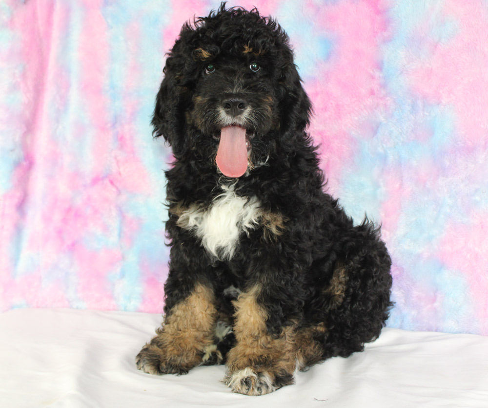 Is there such thing as having swagger while still chasing butterflies? Jack will make it seem like the two opposite actions go hand in hand with his jolly wonderment for the world paired with his manly inner confidence! We love watching this big boy play like an oafy bull in a China closet with a childlike energy always on the hunt for getting into fun! Jack loves to investigate, has excellent recall, and could win the award for both the biggest heart and gentlest giant! We love seeing him adjust his style of play to suit his sisters needs- happy to go from spicy sidekick or lazy love bug! If you are looking for your first bernedoodle and want a temperament that everyone in the neighborhood will fall in love with and talk about- Jack is the man for you!