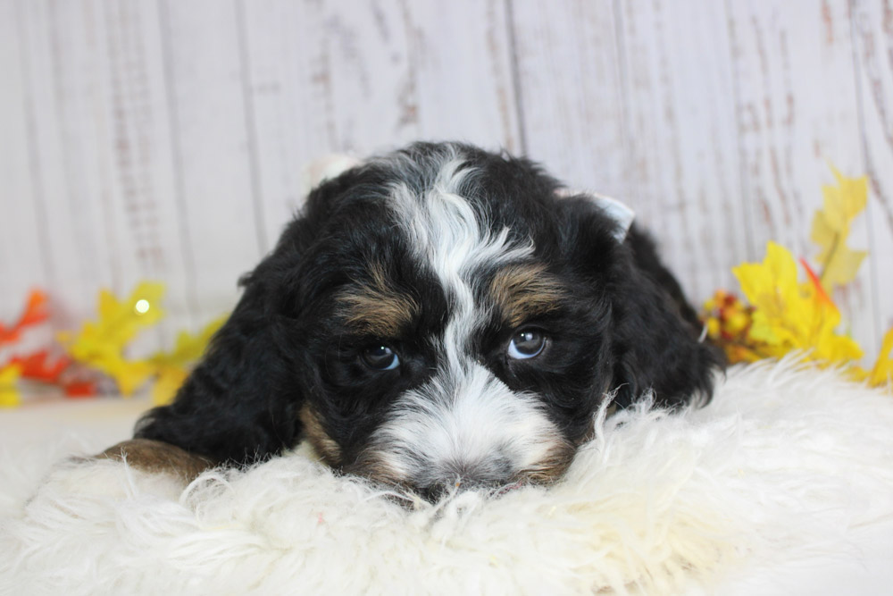 We don’t know how Kenzie has got such a spoiled girl complex but she’s been born as a self proclaimed princess! Take the aloof independence of a bernese and mix it with the stoic intelligence of the standard poodle and you’ve got a girl who makes it her job to keep her circle small but is fiercly loyal to those within it! Kenzie has an ornery side and an agenda to have her way if she can influence us humans in any direction she chooses! Though she is fairly calm and quiet- the alpha vibes are strong when you watch her manage her sisters with a maternal instinct! Though she wags her tail constantly- we can’t say that her brain is always focused on the good of the pack but leans into finding ways where she can negotiate to have it her way! If you are looking for stoic smarts, self-entertaining independence, and a sweetness at the heart of it all- Kenzie is the one for you!