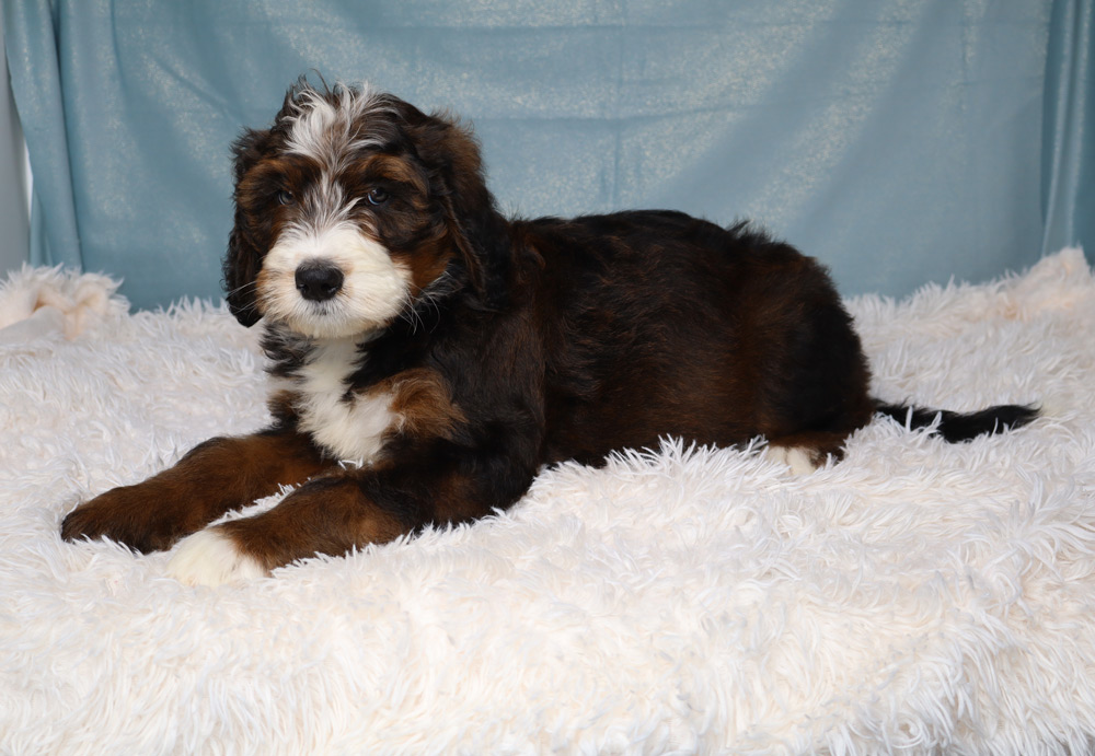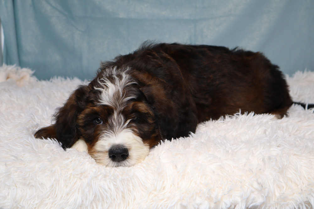 Keeping to himself and staying in his…Lane is a quiet little pal who will fly under the radar no matter how calm or chaotic his environment! To say he is super chill is an understatement so expect a doggo who acts more like a bear rug than your typical puppy as he lays and plays alone quizzically inspecting every part and angle of his toys like his mouth is on quality control duty! We see this pup being a snuggly sidekick to a family of geeky gamers, or the trusty friend to an ‘old timer’ who wants a little extra company at the family cabin in the mountains! If you are looking for a gentle nerd who is kind, carefree, calm, and content with the simple things in life- Lane is the one for you!