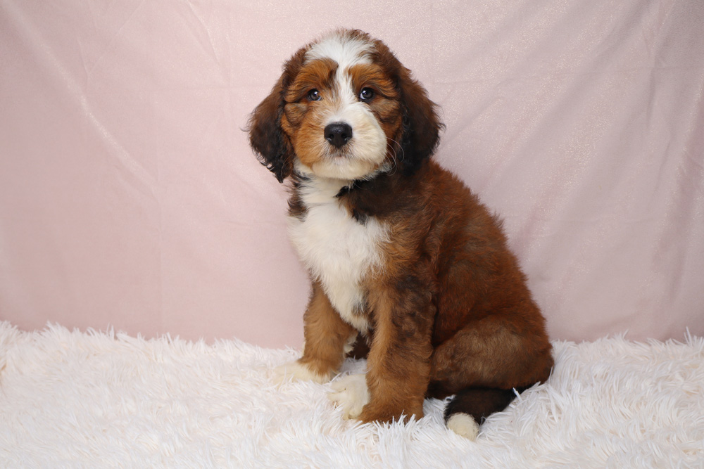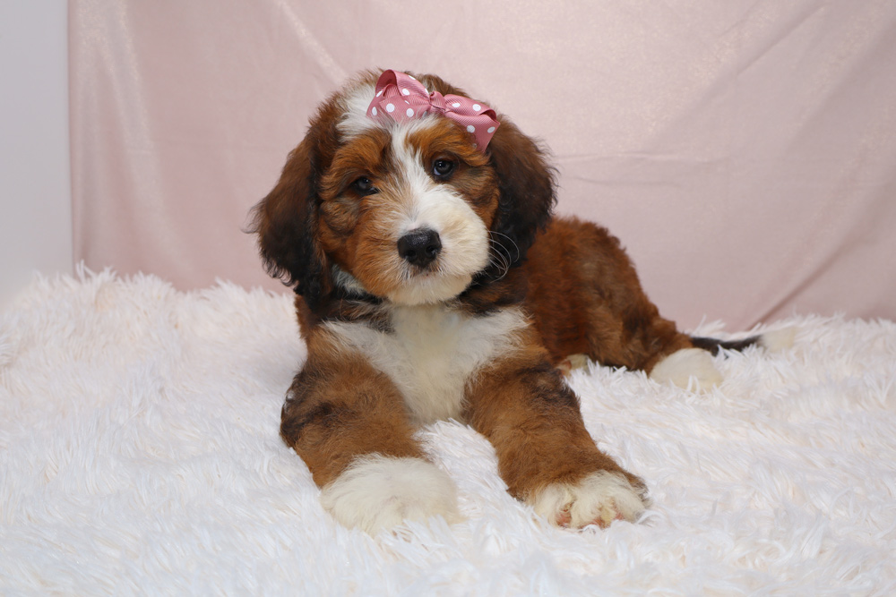 The ‘Melissa McCarthy’ type among her littermates- Patches does a great job being both comedic, spunky and playful! She is the kind of pup who can be friends with anyone with the hopefulness and silly hospitality that comes bubbling out of her heart! Like her name implies, Patches seems to have the ability to find holes and weak points in her siblings personalities then cover them with her joy! This girl thrives on a bit of friendly competition and will use her quick nimble mind to bring a bit of antagonizing humor into everyone’s life! If you enjoy bold confidence with a big side of humorous spunk- Patches is the one for you!