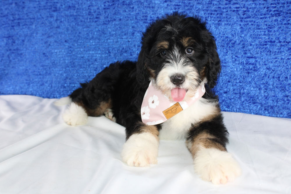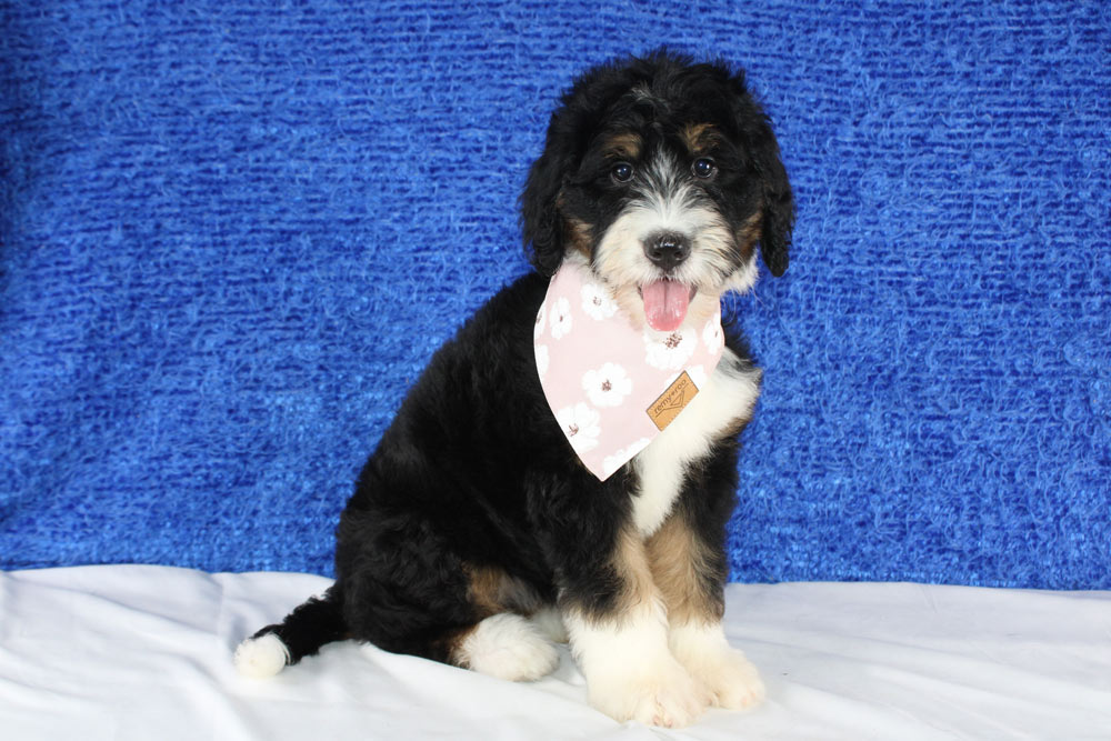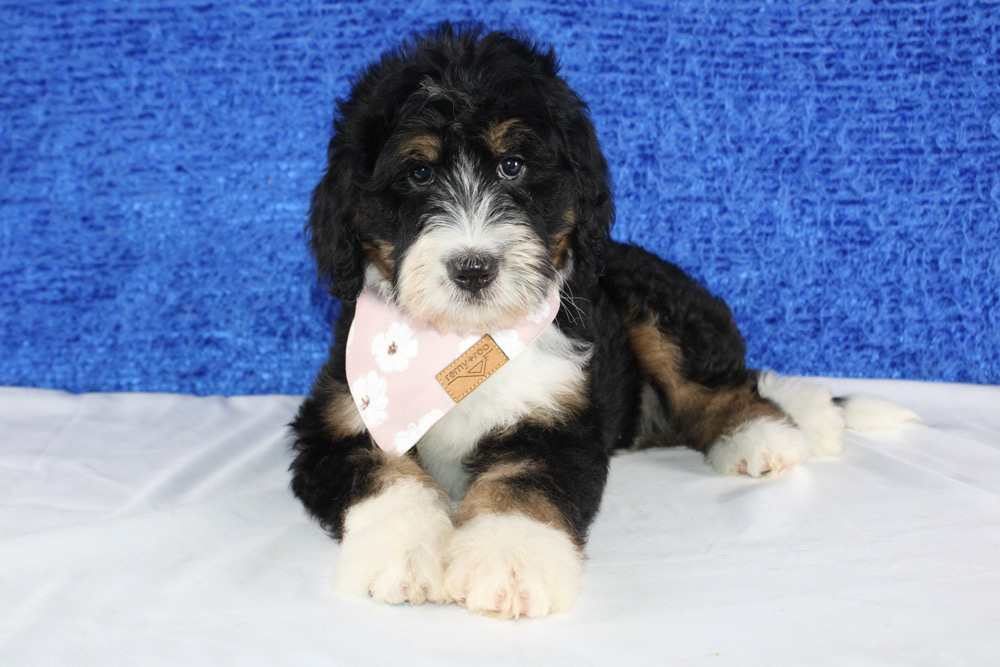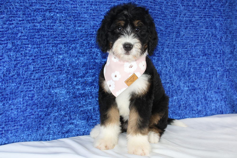 Little miss sunshine is Pyper’s nickname around here! This girl is always happy, always smiling, and always giving kisses to everyone around her! When not making her rounds to spread her natural joy like confetti fluttering in the air- you can find Pyper chillin’ around watching others with crossed legs and contentment in her heart! She is a bit of a busy body- needing to keep an eye on all the happenings around her- but we suspect it’s less from a competitive fear of missing out and more from a genuine love for her siblings! Our girl adores snuggling and making authentic connection with any and all humans- from little kids to old fogies! We know this puppy is aching to be living out the next chapter in her life so whether you are looking for a playmate for an existing dog or your kids- Pyper is one of our top picks that would adapt well into a variety of families, living situations, and lifestyles!