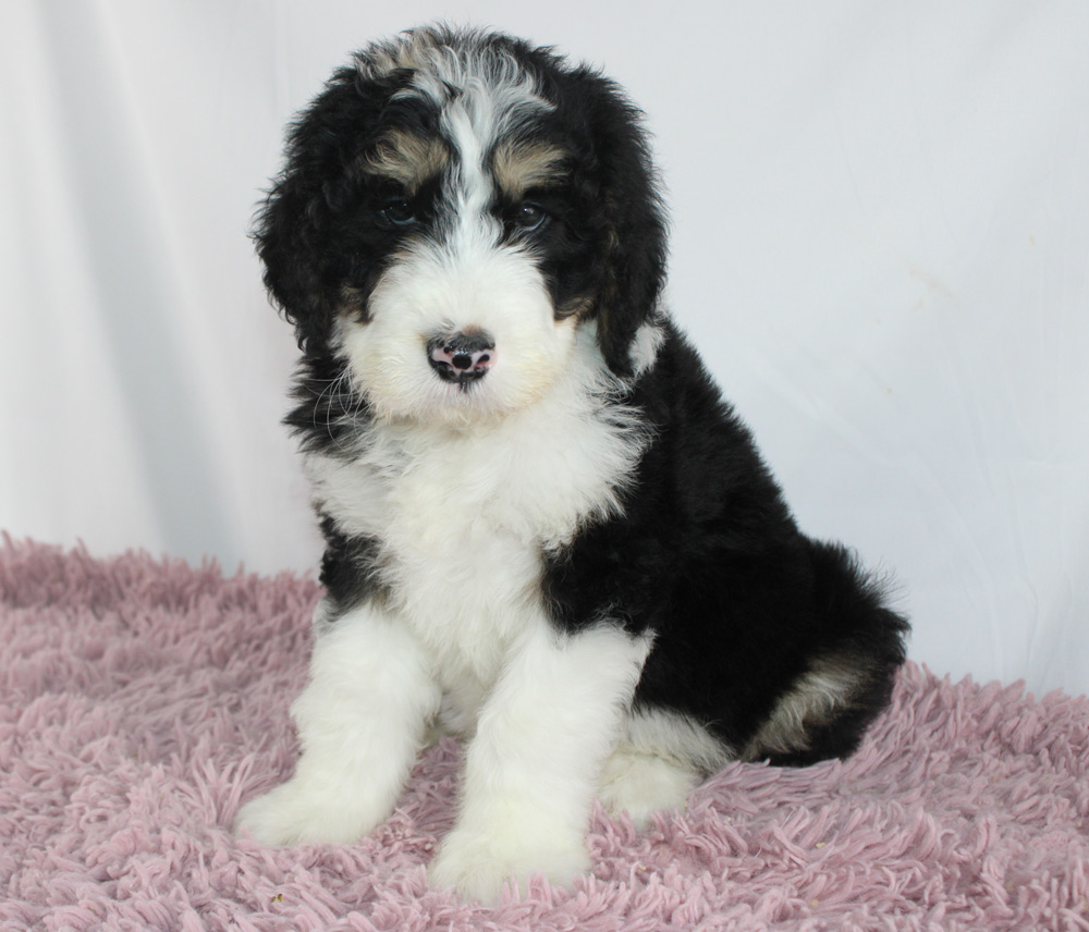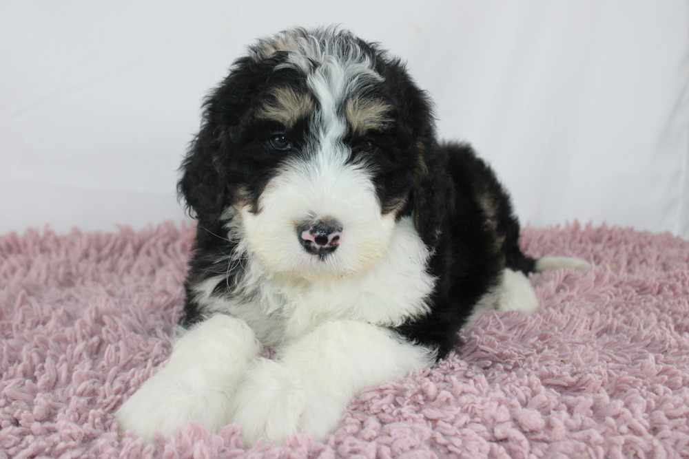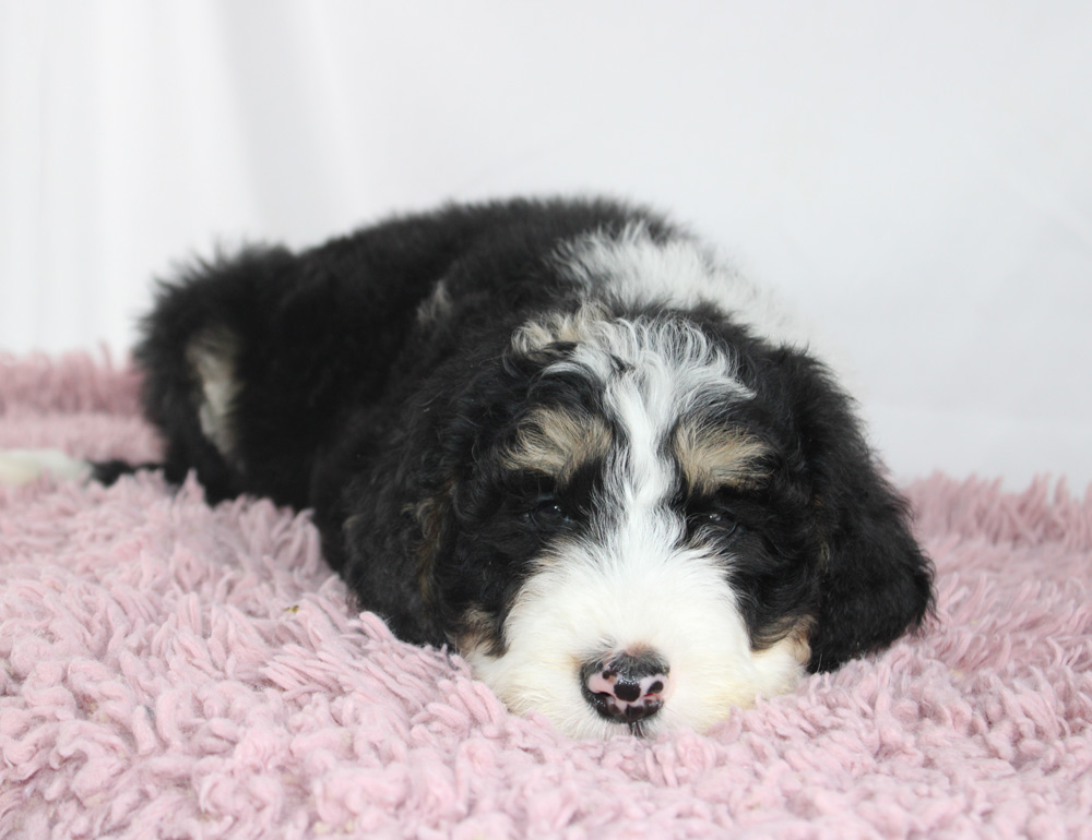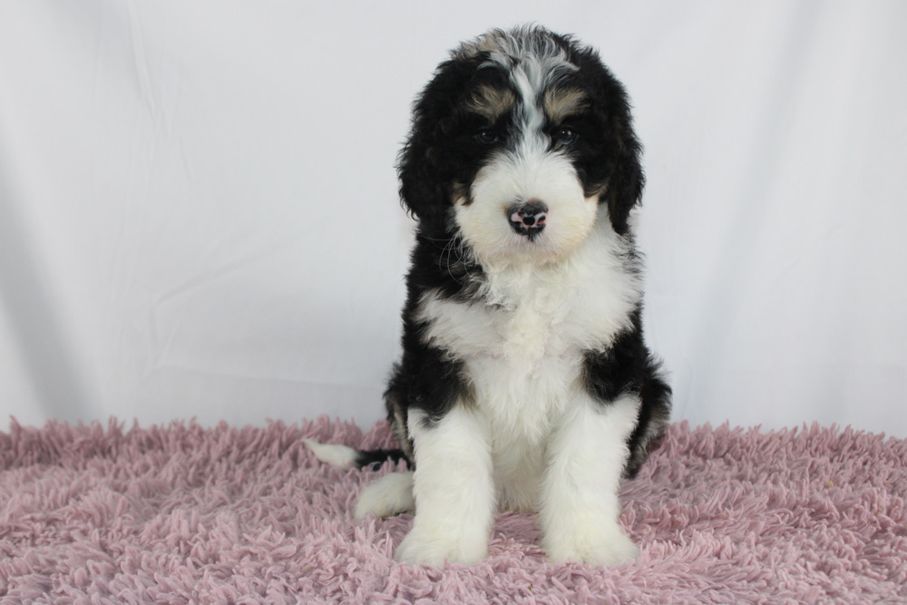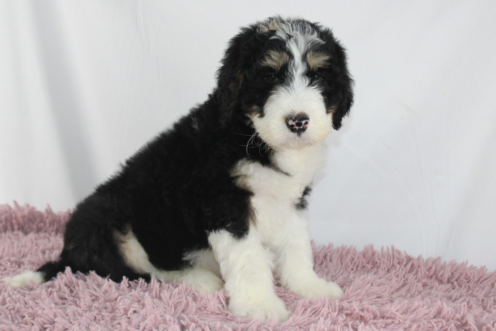 Low maintenance with a very mild bernese leaning temperament perfectly describes our boy Slate! He’s a chill dude who loves to just hang out among his littermates. Our boy is content with being a spectator most of the time though he may get inspired to explore with his spirited sister Aminah or have a burst of random toy stealing that seems almost out of character for such a subdued dog! We love Slate’s sweet aura and clear love he has for both his siblings and humans alike! Though his heart is quick to connect and he’s pretty much up for whatever- this boy is sure to let some of those Bernese stubborn streaks show up from time to time! If having a binge watching buddy and a mild-mannered co-adventurer by your side sounds like the best start to the next chapter of your life- Slate is the one for you!