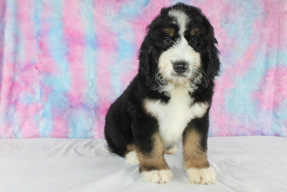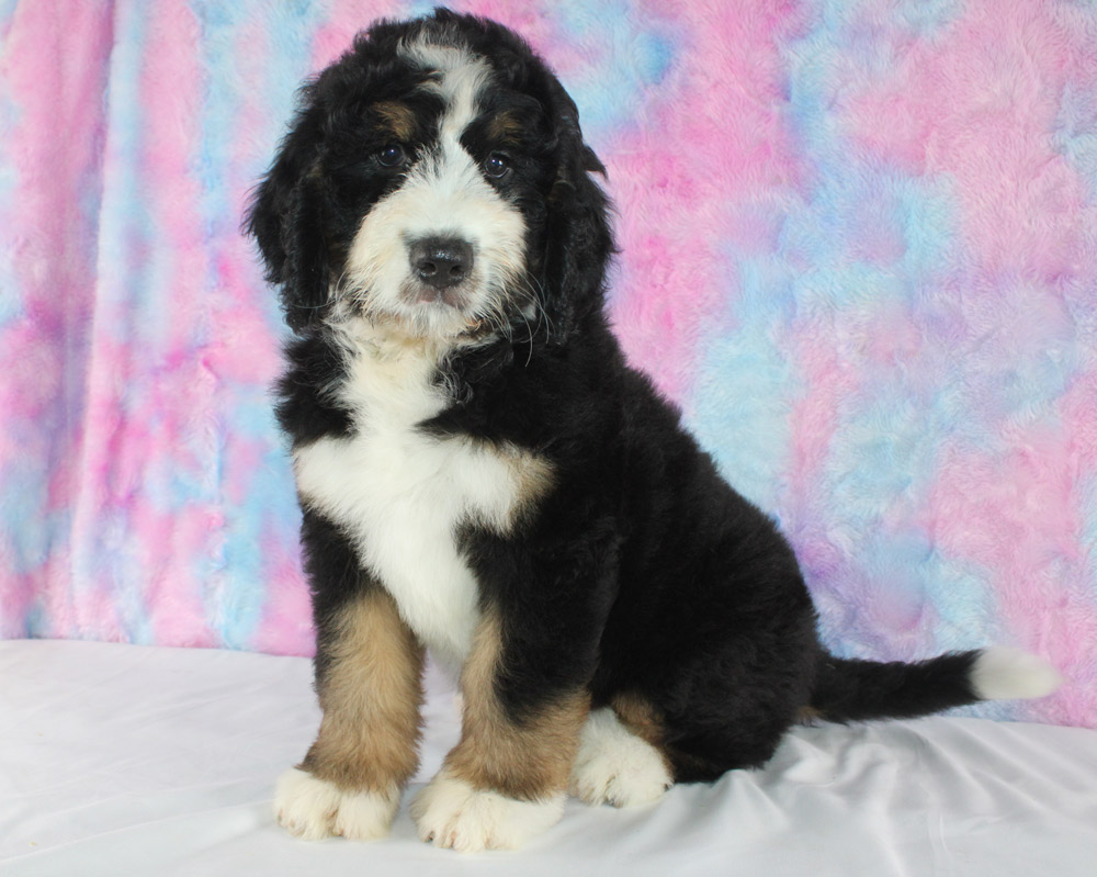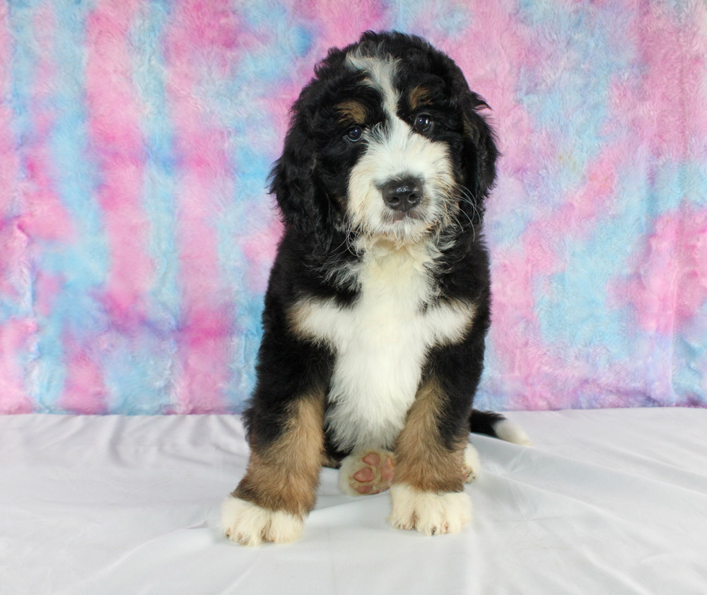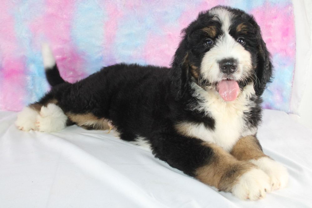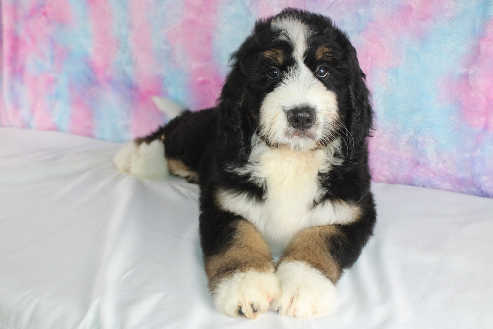 Operating more like a regal statue in the middle of a busy city center, Stewie has taken on the role of stoic watchdog over his siblings- surveying their surroundings and putting off vibes like a papa bear to give them all a sense of comfort and confidence that he’s around! Behind that laid back lumberjack-in-the-woods energy- Stewie is still affectionate, friendly, and a happy guy! Like his bernese mama- he’s very much motivated by comfort and can easily stay calm right smack dab in the middle of complete chaos! Because our boy. is a leader and acts like he’s the O.G. of his littermates- expect Stewie to have some stubbornness rooted in an aloof discomfort of the unknown. If you are looking for regal, handsome, calm and a canine who carries his loyalty around no matter who, what, when, or where- Stewie is the one for you!