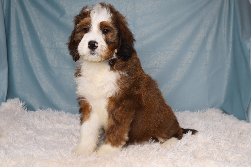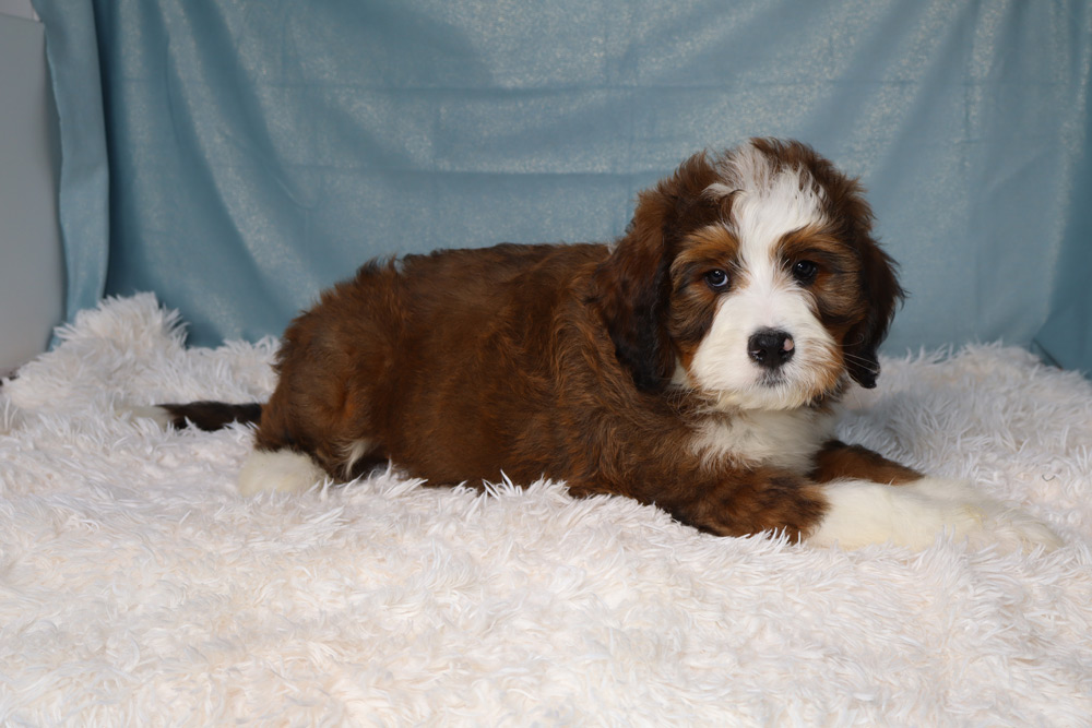 Teddy acts as if life is just one big playground and he is the king of recess! This boy oozes our confidence but does so in the most casual way possible! He’s like the the high school quarterback at a the first homecoming game where everyone is his biggest fan and cheerleader of his fun! Teddy is the natural leader of his littermates but only because he is the most bold, most brash, and totally bombastic in his approach to life that everyone wants to be like him! Expect a legit playmate with tons of smiles and a relaxed demeanor just as much as he enjoys being the king cuddler! If you are looking for happy, oafy, and good vibes only- Teddy is the one for you!