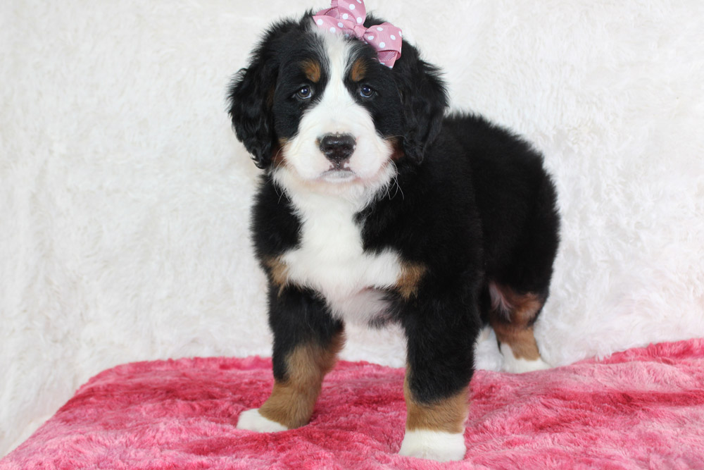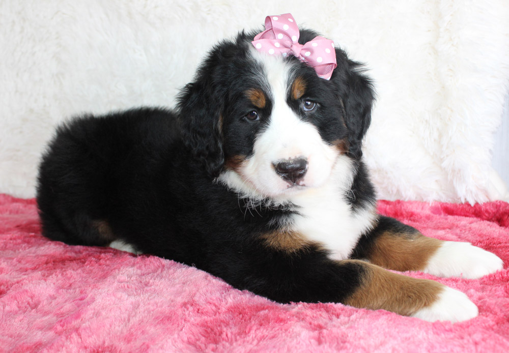 We predict Bailey is going to want to be an oversized lap dog throughout her life- because being affirmed, snuggling, and feeling the comfort of her loved ones is the  driving force of her heart! When not trying to be adored by you-Bailey prefers to lay and play away from her siblings- but we don’t blame her since she seems to be their favorite siblings to casually wrestle just because they need to lovingly harass someone! We think our girl is like Anna rather than Elsa- the sweet underdog who knows how to support her siblings with kindness and patience even though she secretly longs for one on one connection and attention! If you are looking for a big Bernese baby who will look to you for love and reassurance- Bailey is the canine companion for you!