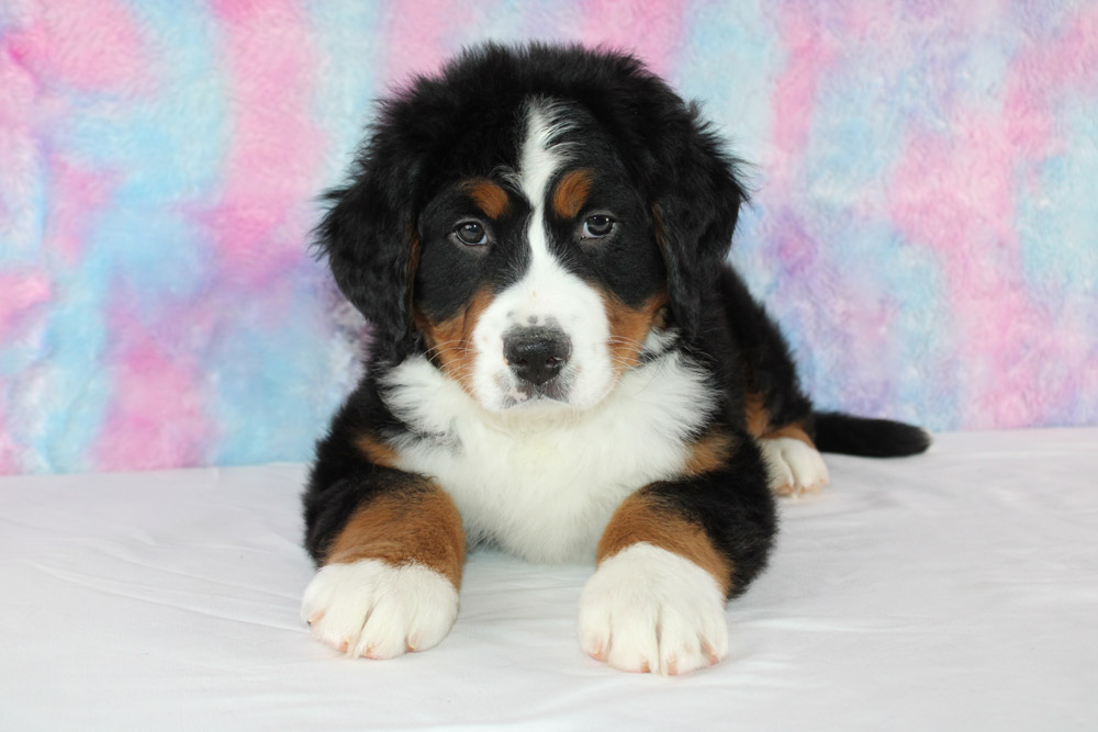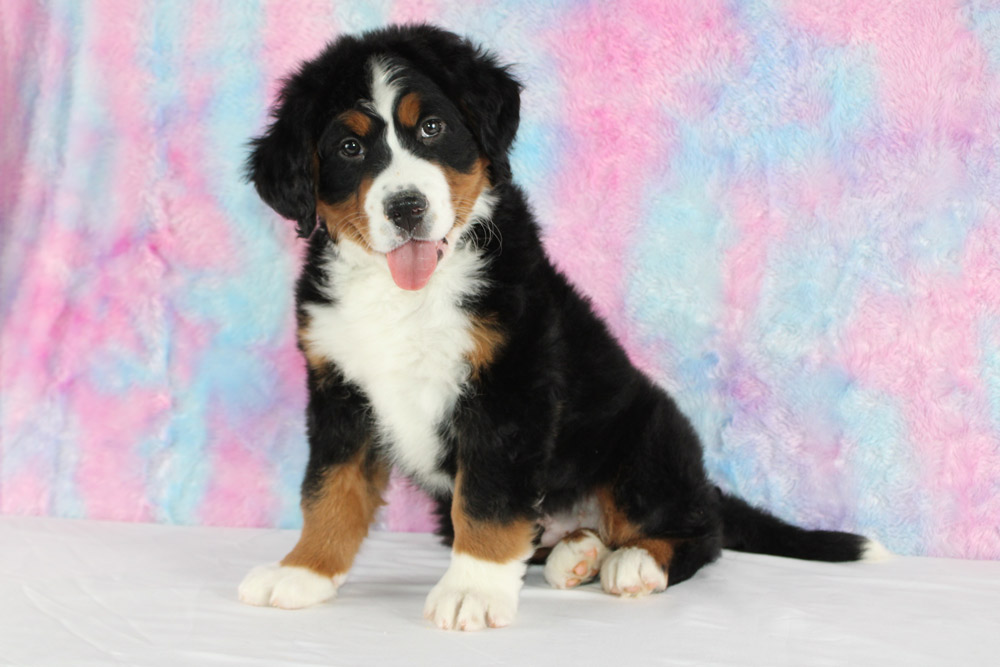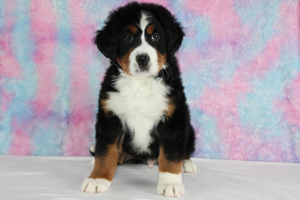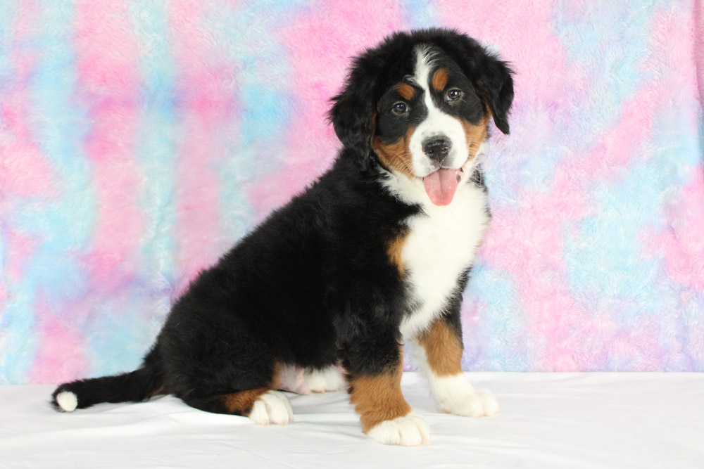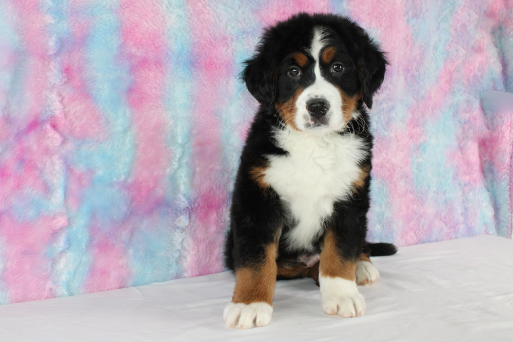 A pack-centric puppy who takes the protective watchdog genetics of a bernese a little more seriously than the others, Bingles comes off like a 007 type with his prim and proper controlled personality! Our boy is friendly to those he deems safe, but is always watching to see what changes there are in his surroundings so that he can be there for those he loves! Bingles is steady, simple, and loves to just hang out where the drama and excitement aren’t taking over his feeling of security! This pup loves cheek to cheek snuggles and knows that it’s his duty in life to be man’s best friend- he just isn’t 100% sure how to get there yet! If you are looking for both sweet and stoic- Bingles is the one for you!