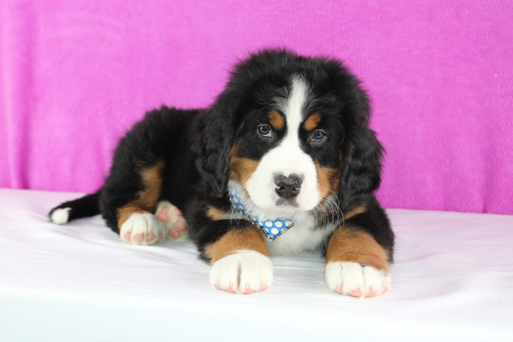 There is one thing Brett is searching for in his little life and that is anything that makes him feel all the warm fuzzies! From loving tummy rubs, to finding a soft blanket to lay on or getting some ear scratches, this boy’s super mellow vibes will bring a warmness to your heart just as he does to the sweetness his soul radiates throughout a room! Brett is apprehensive and very analytical so making sure you’re a safe friend before he shows his true colors will be necessary! We can see our boy being a steadfast companion to a retired couple or become the unofficial mascot of the neighborhood! If that gentle Bernese spirit is what you’re after- Brett is the one for you! Brett did show a tiny umbilical hernia on her vet exam that will look like an outy belly button and is purely cosmetic. Our vet recommends not getting it surgically repaired as she said it will very likely close on it’s own and has not affected Brett in any way.