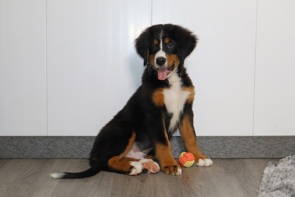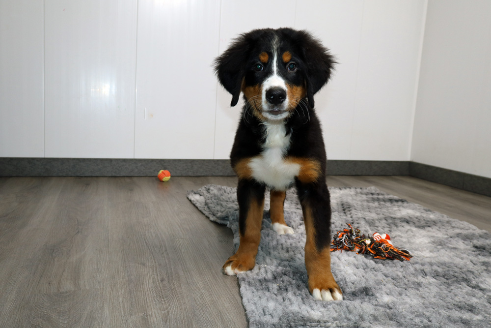 Born with the mentality of a star athlete – Dozer is the kind of dog who loves a good challenge, both mentally and physically! He definitely doesn’t live up to the lazy Bernese stereotype and comes off more as a super jolly working dog who gets a natural high from learning and doing! Our boy is quickwitted, confident, and always has a smile plastered on his face! We think Dozer would be the perfect dog to an outdoorsy family who loves hunting, fishing, and maybe has acreage or a country-vibe lifestyle! He is the perfect blend of activity partner being all in on the adventure, and a gentle giant who simply enjoys hanging out with those he loves! If you are looking for a dynamic companion to help with the daily chores just as much as he will enjoy relaxing with the family – Dozer is the one for you!