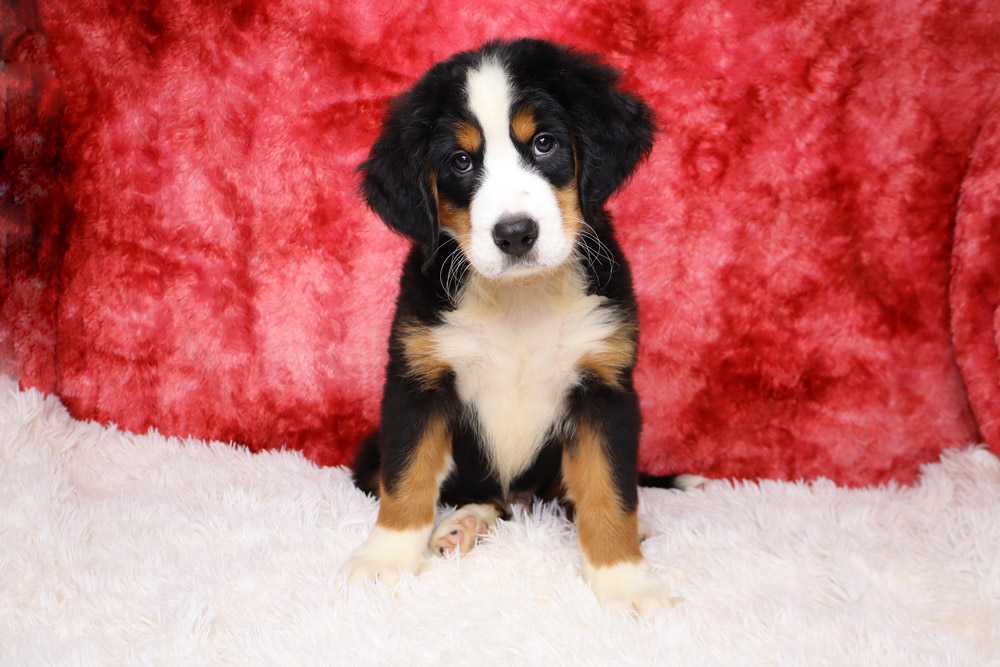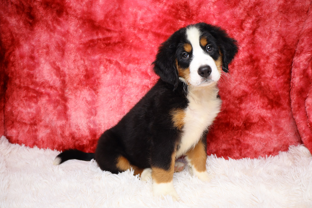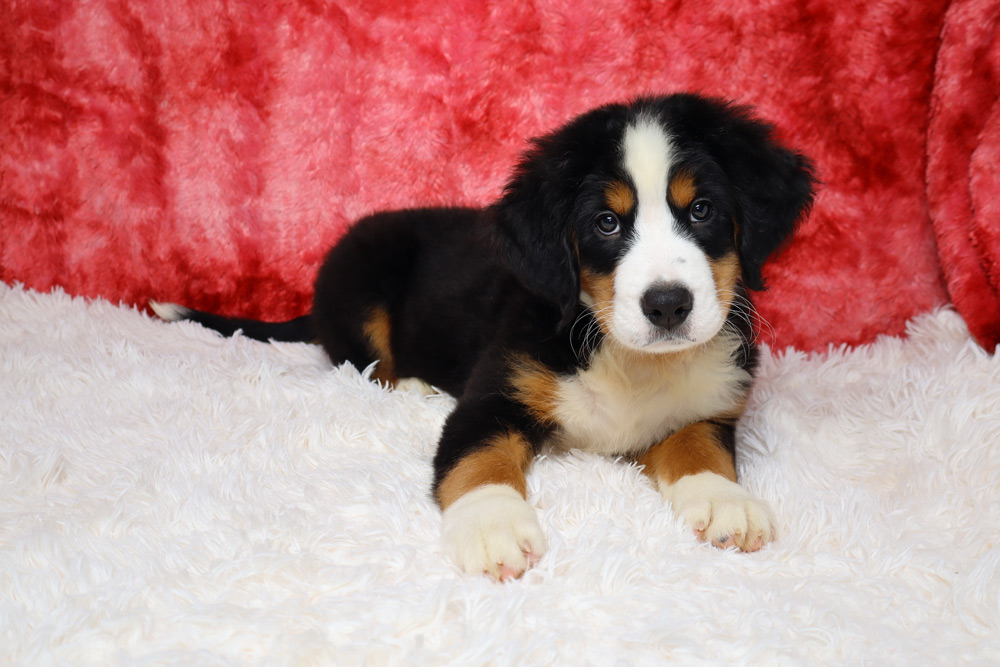 There’s nothing quick and spunky about our boy Jett! He’s a typical lackadaisical Bernese boy who gets his thrills from simply hanging out! He reminds us a lot of a Little John who is the steady anchor to Robin Hood‘s adventures! Jett is highly aware of his surroundings yet chooses to live in a calming peace and a thoughtful gentility that can soothe the drama and angst out of any one of his siblings! Our pop communicates loyalty in every little detail of his life, so expect a genuine friend who is perfectly content laying in your presence and completely relaxed with a smile on his face! We feel Jett would be an amazing companion to a geriatric dog or retirees who simply want a big fuzzy sweetheart hanging around the house! If you are looking for a friend who will who seems to be gliding along the lazy river of life- Jett is the one for you!