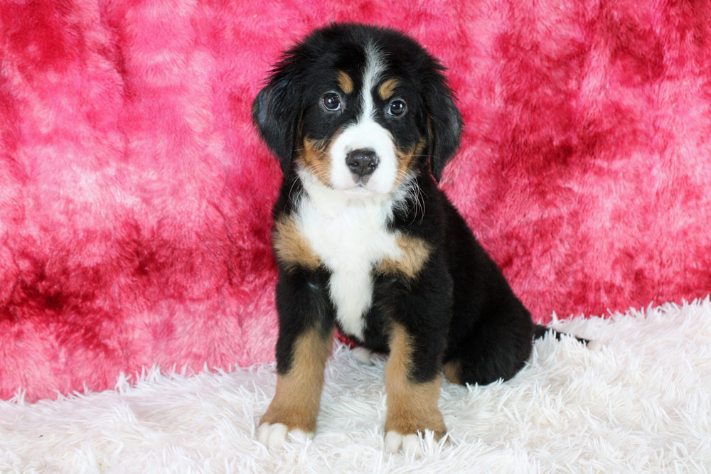 If you’ve got a pocket in your heart that’s been jonesing for a puppy- we think Polly is quite the gal! Our girl is calm, super sweet, and caring for others- there is not a mean spirited bone in her body! Polly is tender and affectionate, loyal and dare we say downright delightful! We think she is the equivalent to your favorite childhood doll who gives off nothing but warm fuzzies, positive vibes, and loves a good snuggle sesh! Polly would be a perfect Bernese for a young family looking for a gentle, patient soul to befriend their little kids! If you are looking for the most scrumptious pup out of this litter- Polly is the gal pal for you!