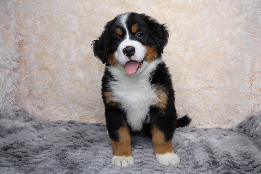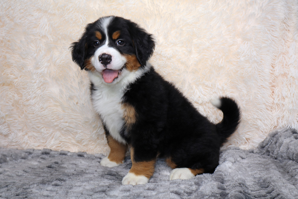 Just like the comforting snack of many of our childhoods, Twinkie is a source of sweetness and good times! Our girl longs for connection and assurance, so don’t be surprised if she comes off a little bit more like a desperate hambone that always needs to lay dramatically at your legs for more attention! We enjoy watching Twinkie play with her toys with big animated mannerisms while tossing them in the air for extra fun flair! This puppy will want you to play and will do her best to kindly yet manipulatively push you to join her so that she doesn’t have to have fun alone! Active families that are looking for the easy going temperament of a bernese with the thrill of county carnival energy will be delighted by this puppy! If you are looking for a spunky, sparkly, and super silly personality. – Twinkie is ready to make the kids’ summer extra epic!