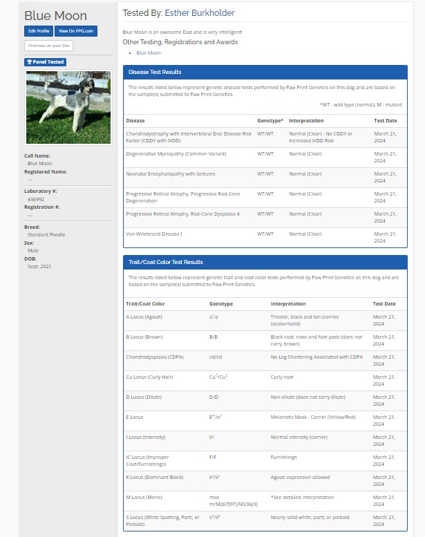 Blue Moon is a handsome, friendly, and outgoing standard Poodle boy who enjoys roaming the sunny outdoors.