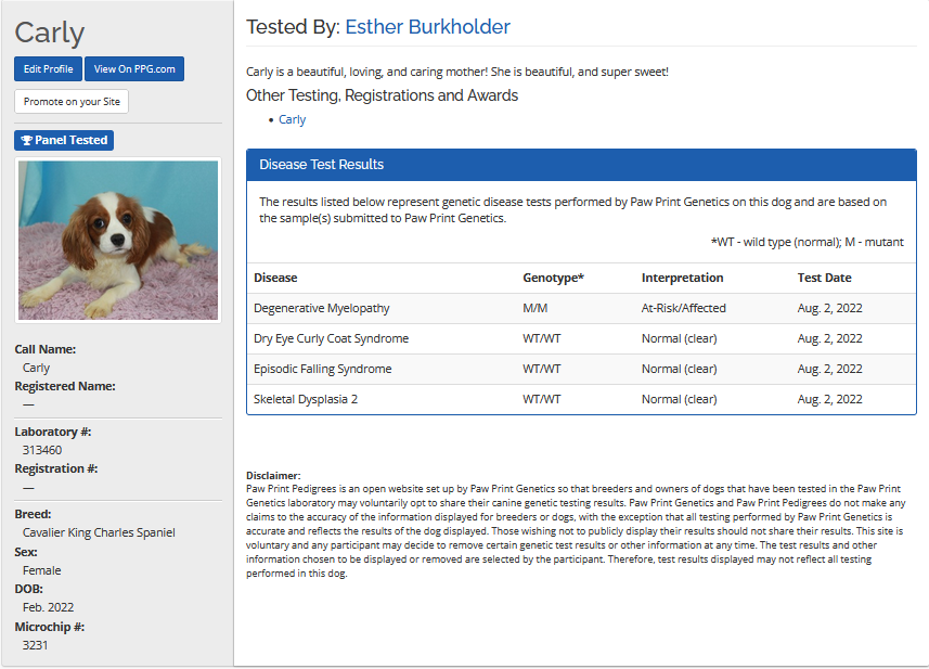 Carly is a very calm, content, and caring mother to her pups! She has a soft coat perfect for snuggling. Carly has the biggest heart of gold!