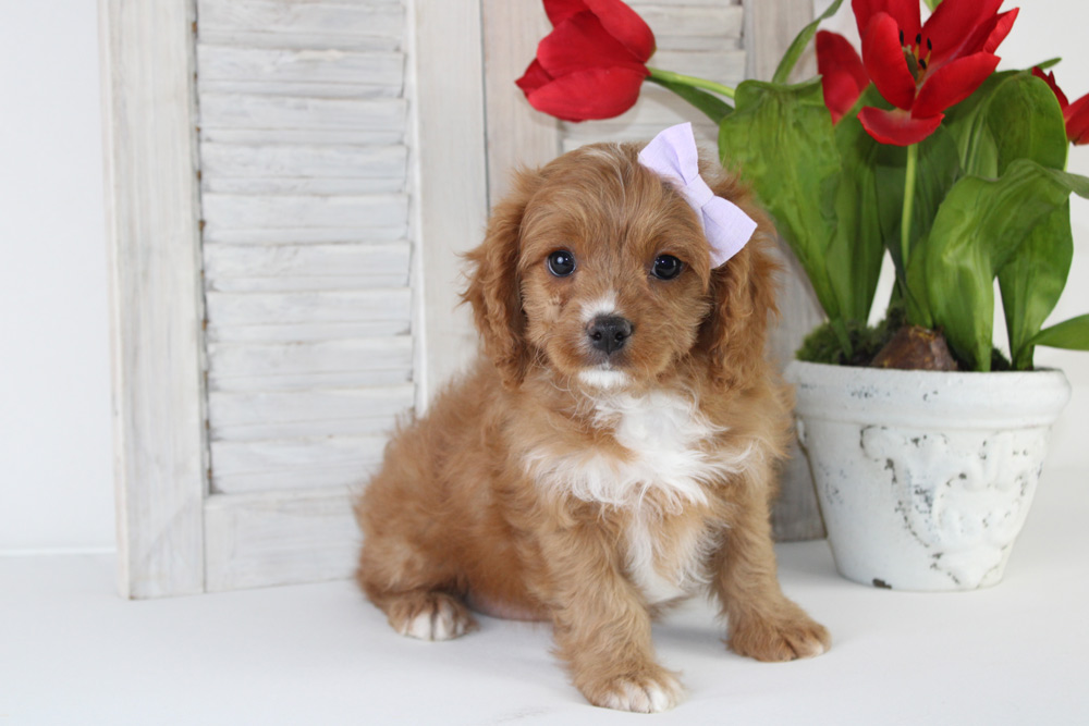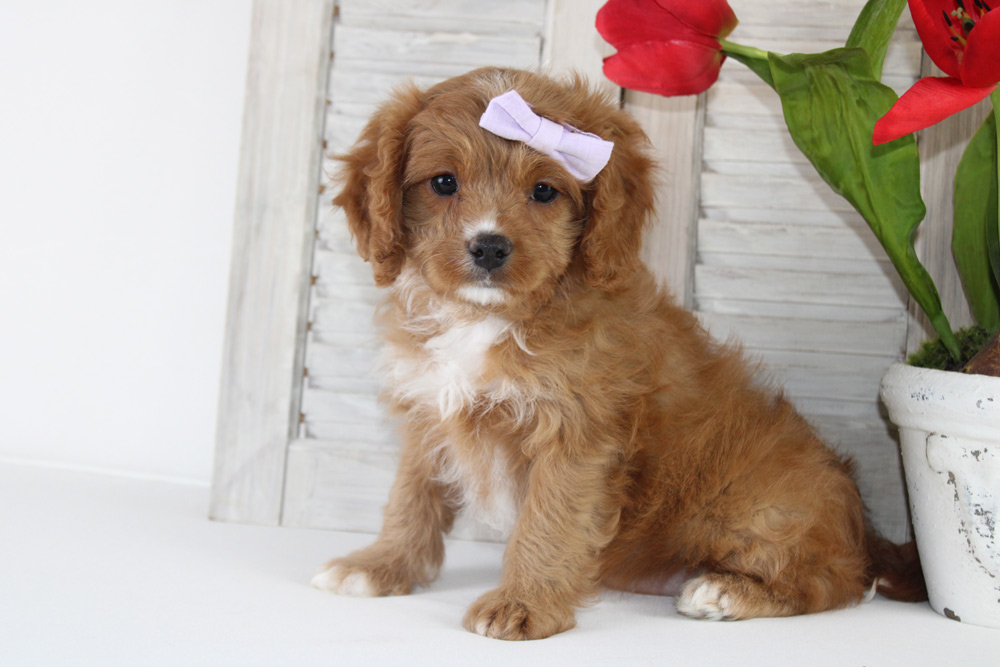 The delicate little doggie of her siblings Arabella’s name evokes thoughts of a dainty ballerina over a boisterous energetic puppy! This sweet sister loves giving kisses to her littermates and humans alike- not caring if they are old or new friends. There is a simple yet loving energy that radiates out of our pup but she may display a bit of apprehensiveness if she’s not quite sure of her surroundings! Arabella is the clear third wheel among the antics of her more confident sisters but we give her props for making an attempt to engage in play! If you are looking for a canine who will captivate your heart all while politely asking for some belly rubs- Arabella is the one for you!