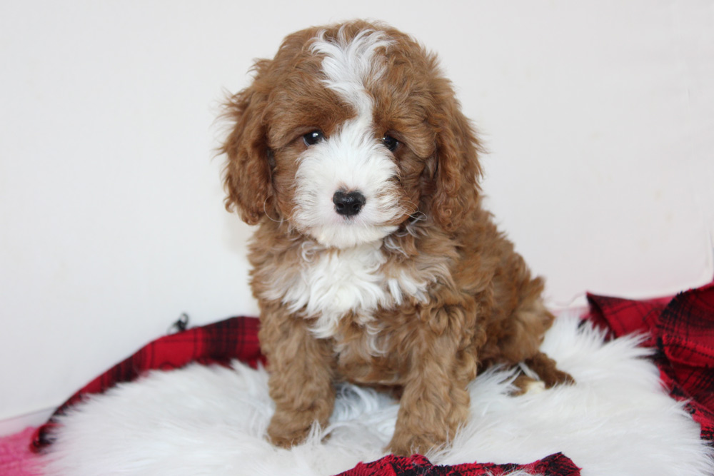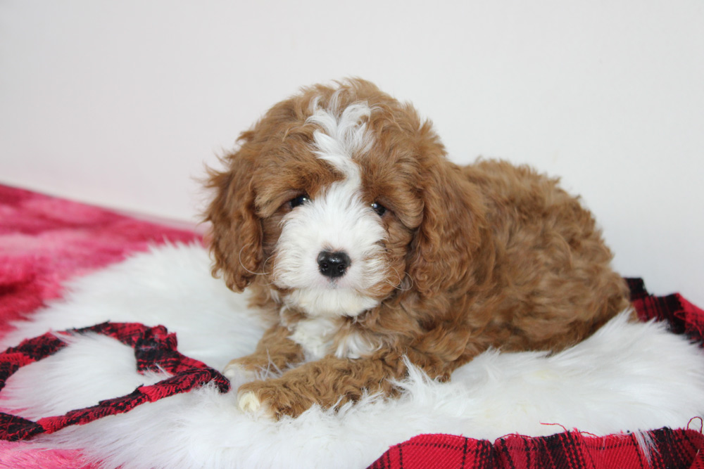 Driven by the excitement of play, Bosco is going to be the first one to dive in to connect with his toys before he ever thinks about making his rounds to say hello and connect with humans! This delightful boy is content keeping himself entertained but will randomly dive into other siblings’ drama if he feels like he’s missing out on something epic! Despite his happy nature and the need for feeling connection with others, Bosco can only handle so much snuggle time before he’s negotiating his way back to the floor to play! If you are ready to shower your puppy with play things and participate in his antics between quick snuggle sessions- Bosco is ready to share his passion for all things play!