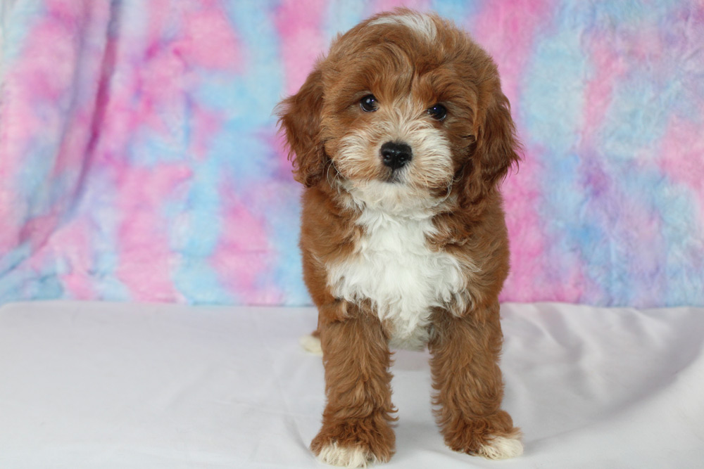 Looking to be infected by pure happiness for years to come? Huxley is one puppy who makes it his mission to spread the same level of cheer you would see during the holiday season except he’s living it 365 days out of the year! We adore the fact our boy smiles as he hops, trots, and zooms around the room- but appreciate all the more his love for checking in to make sure you’re doing ok with loving kisses between his swashbuckling adventures (think Robin Hood and Maid Marion!) Huxley enjoys stirring up a bit of playful drama in hopes of getting chased- we can hear him silently say through his actions ‘nanny nanny boo-boo you’re IT!’ This boy is confident, a tad clumsy, and could care less about anyone’s personal space when he’s ready to take a load off- plopping down on legs, heads, or siblings when the time is right! If you want jolly, affectionate, and playful- we can’t think of a better pup for your family’s first dog! Our puppy did show an undescended testicle on his vet exam . Our vet feels that Surgery Not Medically Necessary and recommends not getting it surgically repaired as our Vet said it will very likely drop on it’s own at 5-7 months of age as well as is easy to repair when you get him nuetered. This has not affected him in any way and he is a happy, healthy puppy!