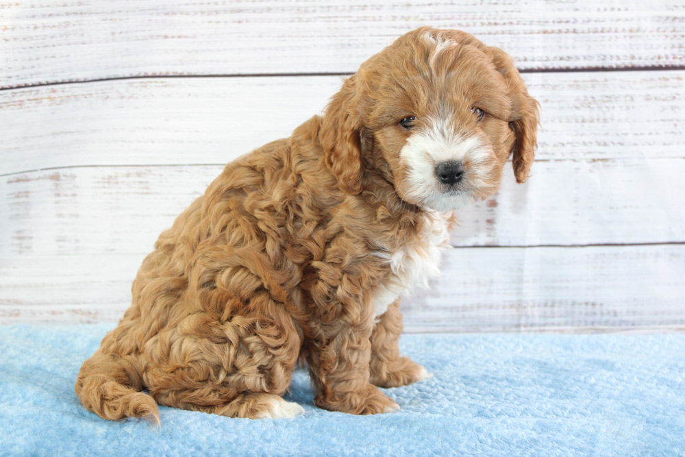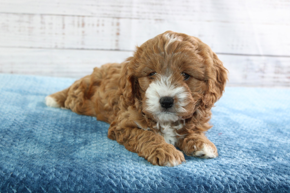 Are you ready to win the lottery? We feel Lucky’s temperament is nothing but golden! He is silly, animated, and always has a big smile on his face while he’s trying to recruit his siblings into wrestling, playing, or exploring as his sidekick! He is the clear leader of his littermates but only wears that crown simply because of his level of infectious confidence and joy! Lucky will hop and skip around the playroom from one toy to the other and from one sibling to the other in hopes that he can be a natural cheer captain! Our boy is an encouragement to all and influential happiness, so expect him to be a bit of a show off, but not in the competitive sense! He simply wants to advertise to everybody that it takes very little effort to have a wonderful time together! Be prepared for Lucky to turn everything into a game so that his brain can be tickled and he can keep his teammates on their toes at the same time! We can’t think of a better cavapoo at our kennel to give a family with kids that quintessential first dog experience! Lucky did show a cosmetic issue of a slight under bite on the vet exam. Our vet stated that this is a characteristic trait in this breed and that it doesn’t bother the eating in any way.