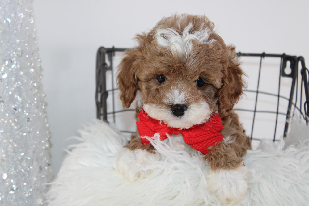 Are you looking for a scrumptiously sweet snuggling puppy to be your new addiction? Mojo is quite content laying and playing amongst soft cuddly things- including your lap! WE love the dainty mannerisms and quiet thought life of our boy- sitting cross-legged and proper as he silently watches everyone’s spirited antics! Mojo has an intuition to know who provides the most safety and comfort- it’s almost as if he’s been born with a warm fuzzy meter to spot the most welcoming energy around him! This puppy was born to snuggle deep into the crook of your neck while being a gentle soul who will bring some solace to a lonely heart! If grandma is looking for a new companion this Christmas- Mojo would be a top pick!