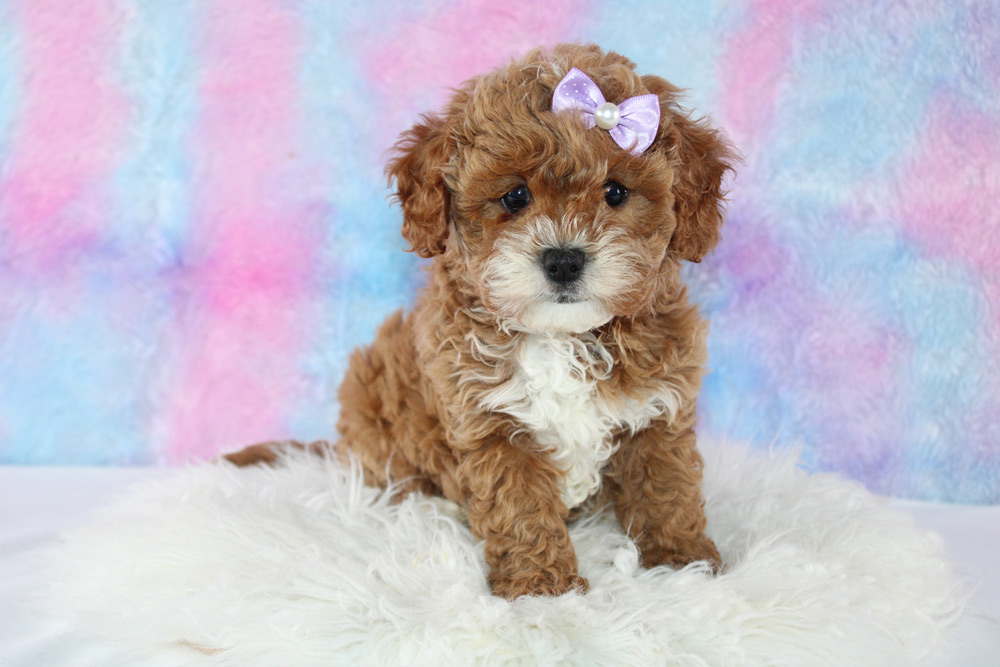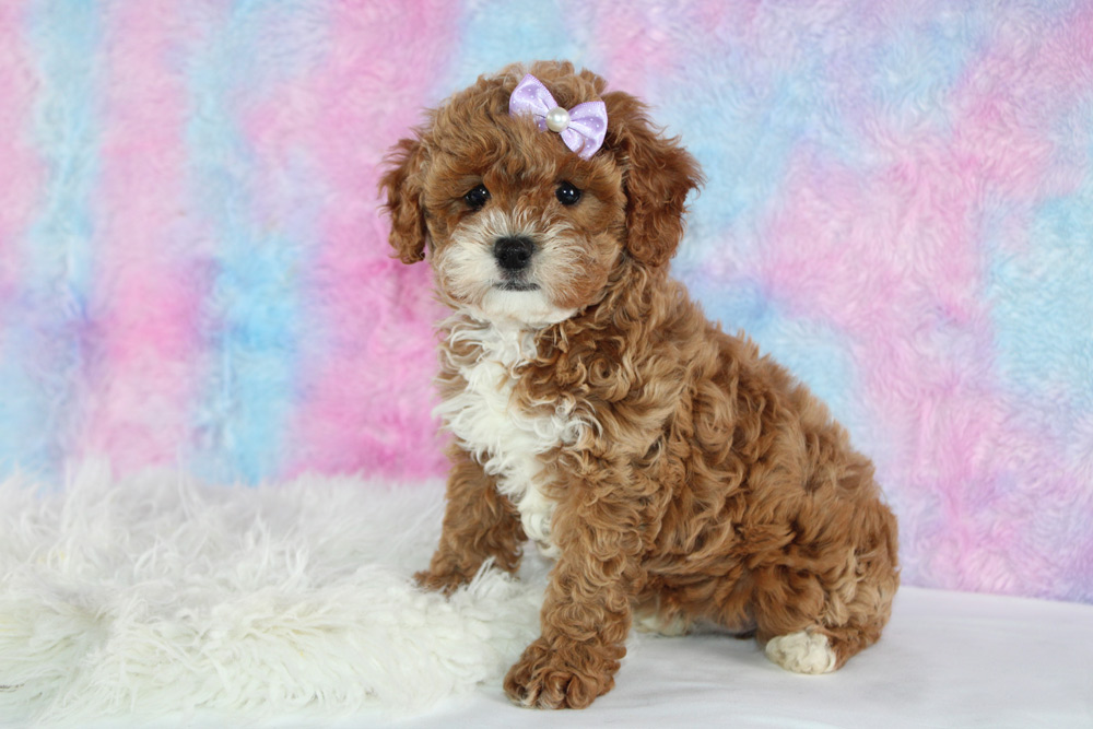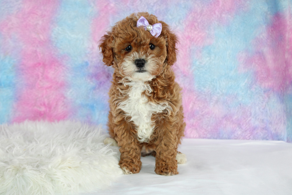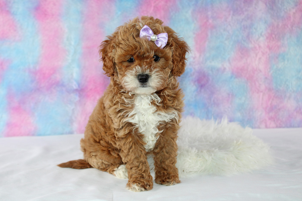 Just like her name implies- Tinkerbelle has an iconic temperament that embodies gracious femininity and a loyal heart! She is kind, observant, and adores feeling a sense of authentic community among her siblings and complete strangers alike! We love her ability to play with others or fly solo- just as much as we enjoy seeing her be the emotional anchor to the rest of her siblings! Tinkerbelle is a peacemaker with an extra portion of patience- and anything negative or harassing she walks through with grace like it’s water off a ducks back! Our girl is the type to solicit tummy rubs, offer complete strangers kisses, and spread her joy to all she meets! If you are looking for your first cavapoo, your next lap dog, or are in need of an extra portion of sweetness in your life- Tinkerbelle is the one for you! She did show a cosmetic issue of a slight underbite on the vet exam. Our vet stated that this is a characteristic trait in this breed and that it doesnt bother the eating in any way.