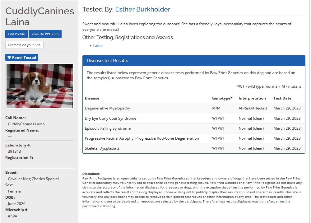 Sweet and beautiful Laina loves exploring the outdoors! She has a friendly, loyal personality that captures the hearts of everyone she meets!