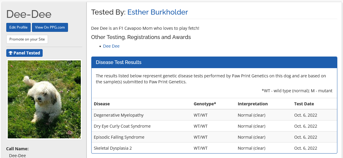 Meet Dee Dee our cute playful little Cavapoo mom. She loves treats and is a very social dog. Dee Dee is a wonderful mom to her puppies!