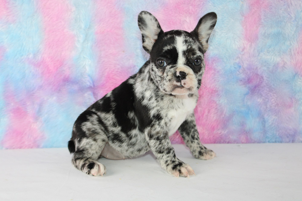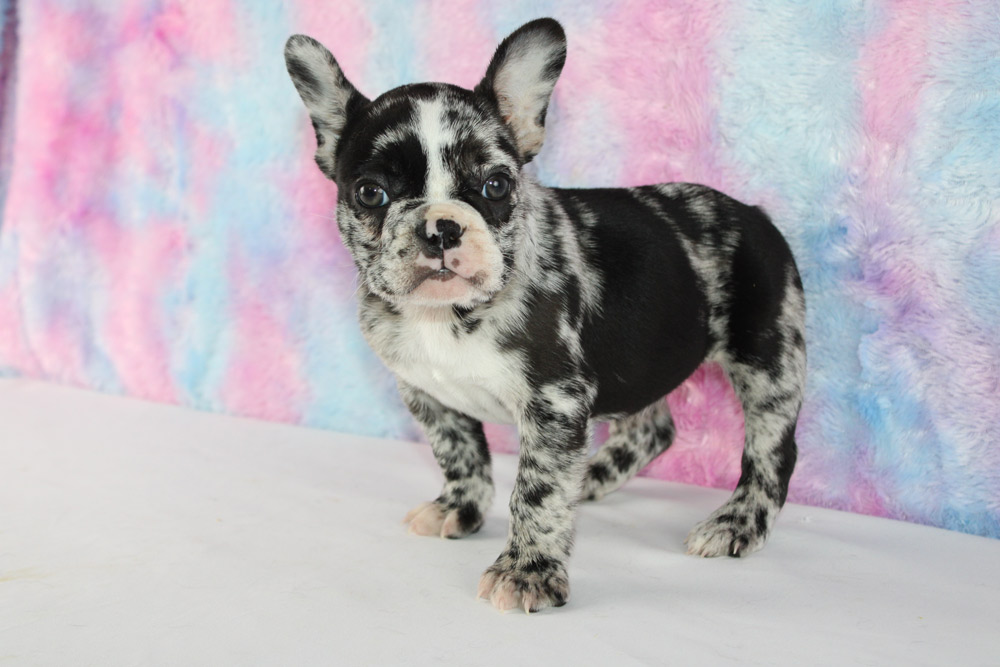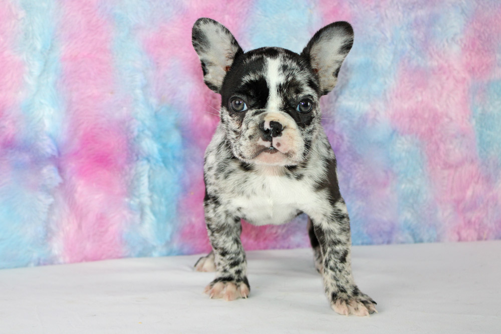 Meandering through the kennel with a wide-eyed wonderment- Chloe is a pack-centric puppy who prefers group play and outings while her brain is still gathering enough intel to make her body comfortable navigating the new and exciting! She army crawls around with a tender-hearted submission- proverbially waving the white flag of surrender while the curiosity in her heart keeps pushing to explore! Chloe is gentle, mellow, and watches what her sisters are doing to mimic their moods and confidence in hopes of having enough gumption to create her own- but for now she thrives in the security of loved ones! If you are looking for a second Frenchie who would thrive under the leadership of your existing dog- or want the perfect snuggly companion all to yourself- Chloe is the one for you!