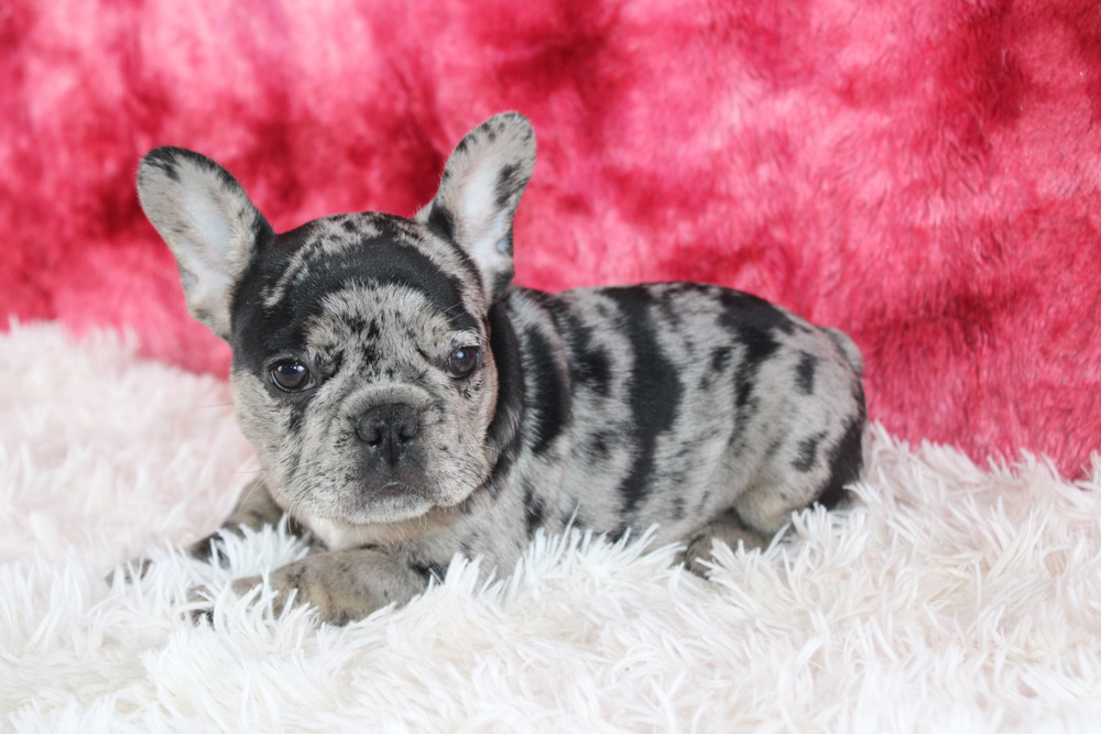 If we could explain Ellie‘s temperament to something relatable in pop culture, we would say that she is from the Peanuts comic strip series! It’s as if she walks around with an invisible security blanket, trying to be involved, but not knowing sure just how to do it because of her tender, timid heart! this girl is the epitome of sweet super kind and would make a fabulous lap dog! We adore the fact that she has so much yielding patience, and a calm intelligence despite being so quiet and gentle natured! Ellie has the uncanny ability to draw out the softer side in her siblings, as well as us humans at the kennel alike! If you are looking for warm fuzzies and a gentle soul, Ellie is just exactly what winning the French bulldog temperament lottery dreams are made of!