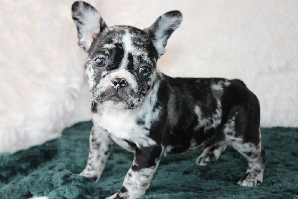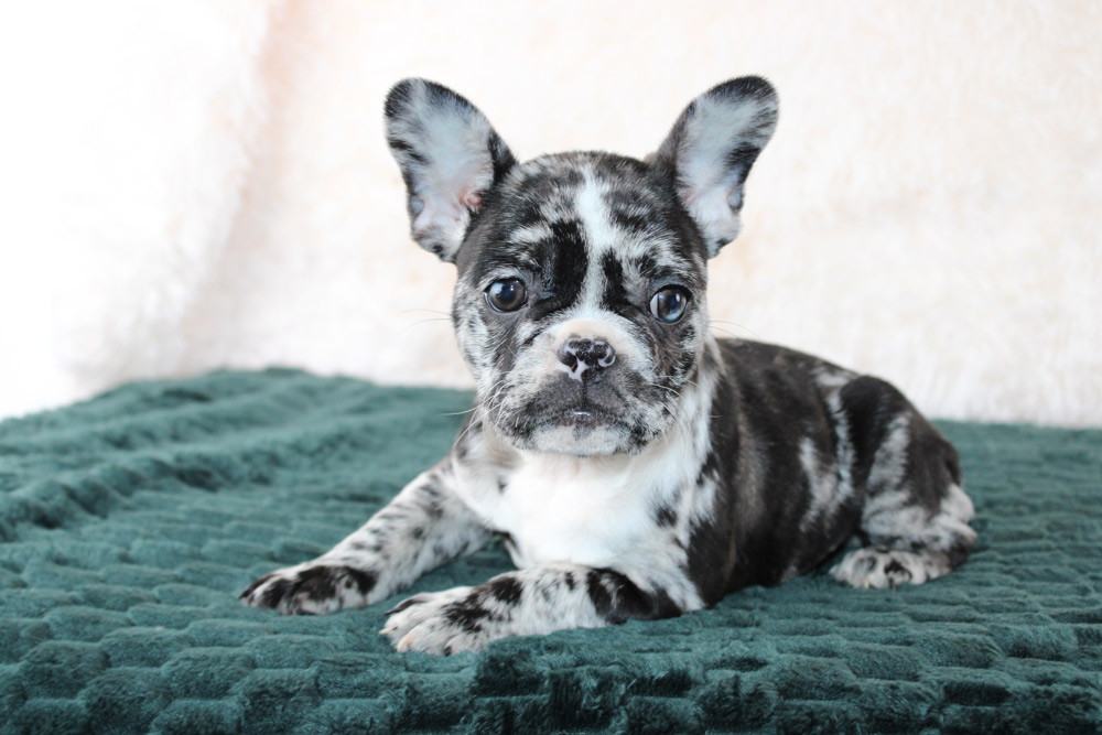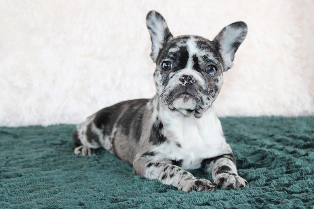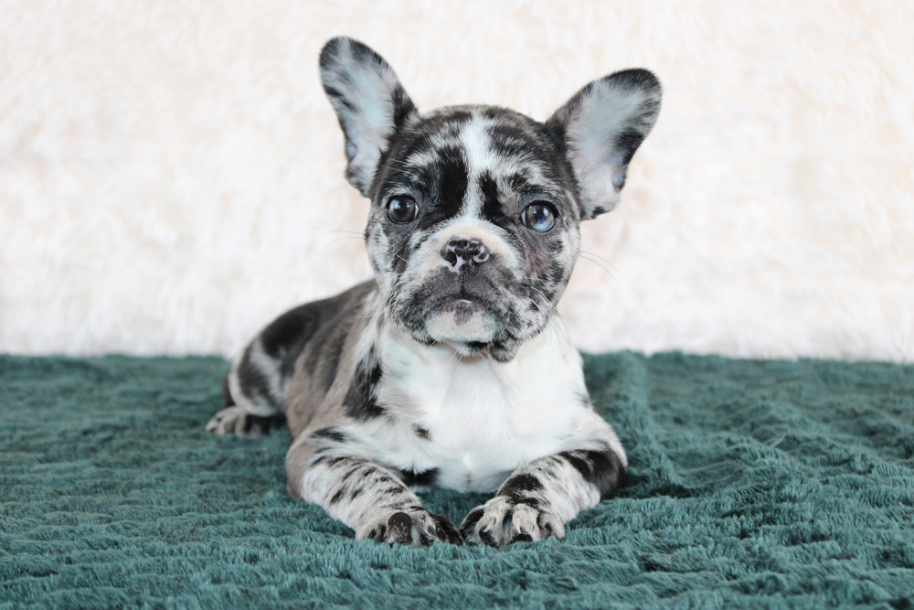 Spunky, playful, confident and a big heaping handful of super sweet- Izzy is clearly the ‘glue’ that keeps the family together! Her joy is infectious but it’s her kind and curious heart that makes our girl just as unique as her coloring! Playful camaraderie is on Izzy’s agenda so don’t be surprised if she easily makes friends with dogs and humans of all shapes, sizes, and ages! We adore her slightly rebellious but highly comedic side that give off a Melissa McCarthy goes to the WWE type of vibe! There is not one person who won’t be enchanted by Izzy’s fun-loving joy and snuggly affections! If you want a well-rounded puppy who has a little bit of everything to keep the entire family happy- Izzy is the one for you! Your puppy did show a Inguinal Hernia