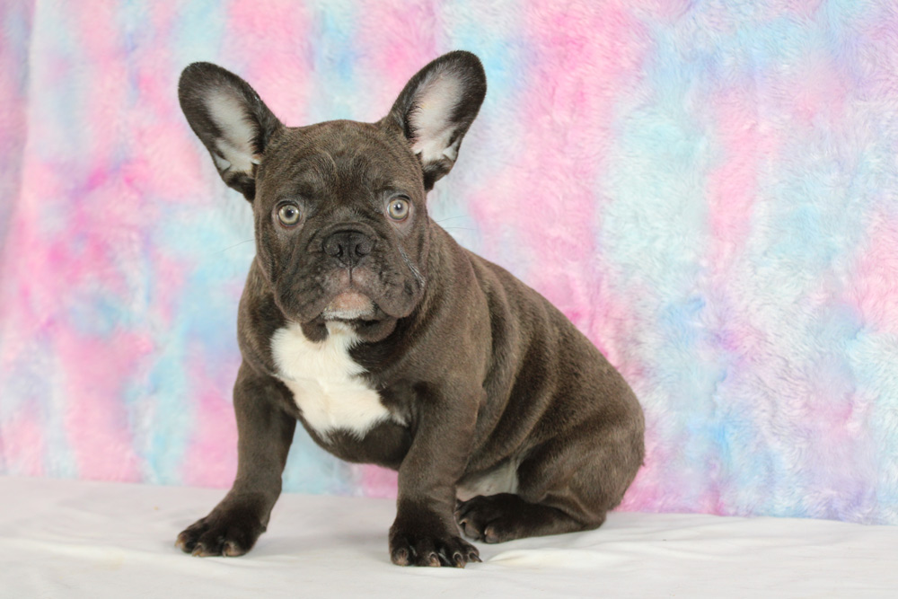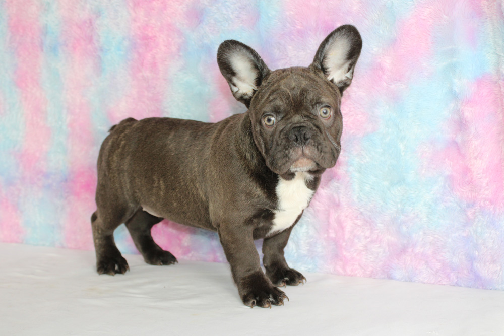 Independent and determined are great descriptors of Jax! This boy knows what he wants, doesn’t need an entourage to accomplish it, and carries himself with the swagger of Rambo on a mission to conquer the world or instigate a bit of dramatic play! There is no doubt our boy will be a bit stubborn, have a need to be number one, and unfazed by anything that distracts him from reaching his goals! Jax is looking for an active family who loves the true bulldog vibe, hoping for a ‘king of the castle’ type while still benefitting from the camaraderie of a canine companion who is determined to live life abundantly! If you are looking for French Royalty- Jax is ready to take his seat in the high places of your heart! Your puppy did show a Inguinal Hernia on the vet exam and it was surgically repaired as well as neutered by our vet. Your puppy has fully recovered from this minor surgery and is a healthy, happy puppy!