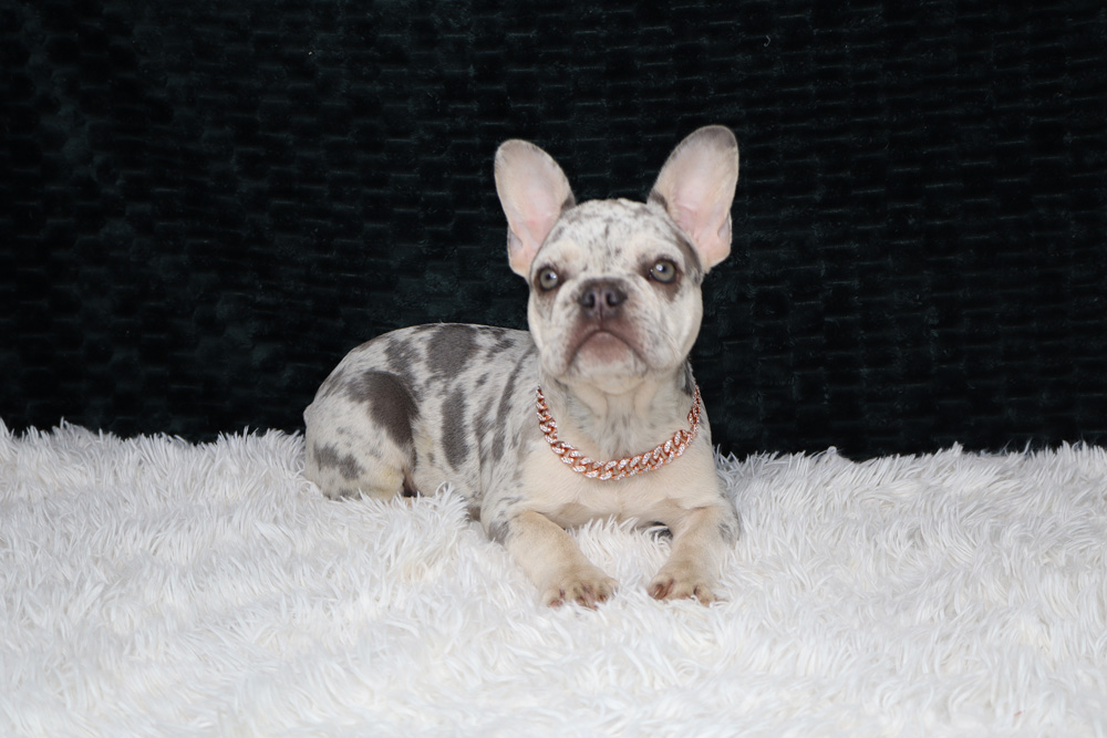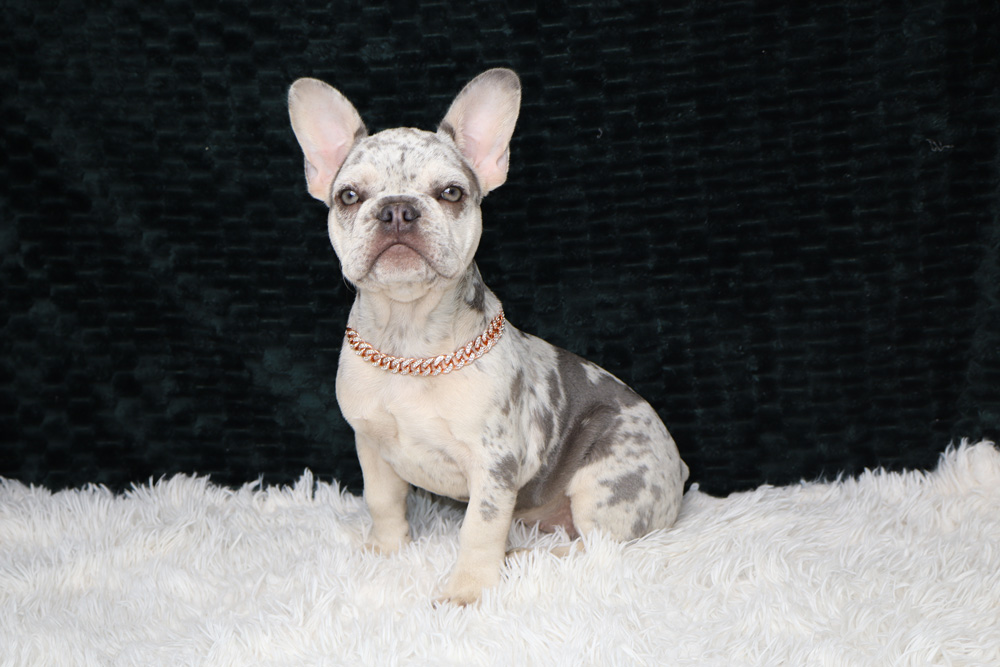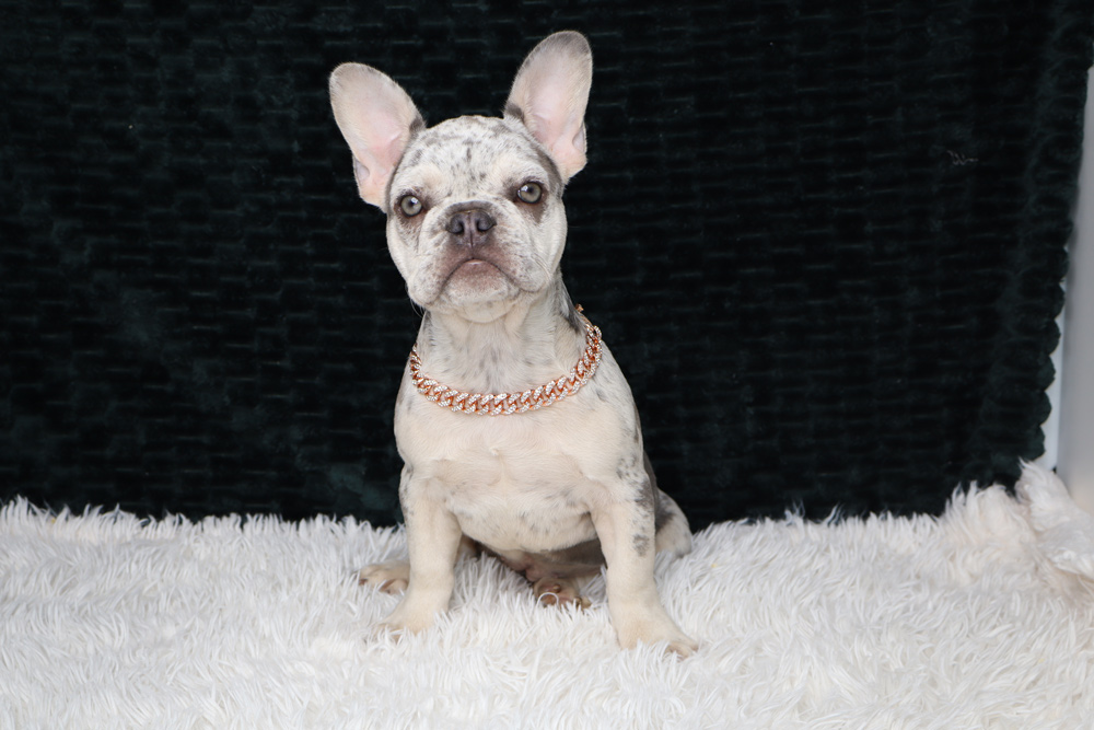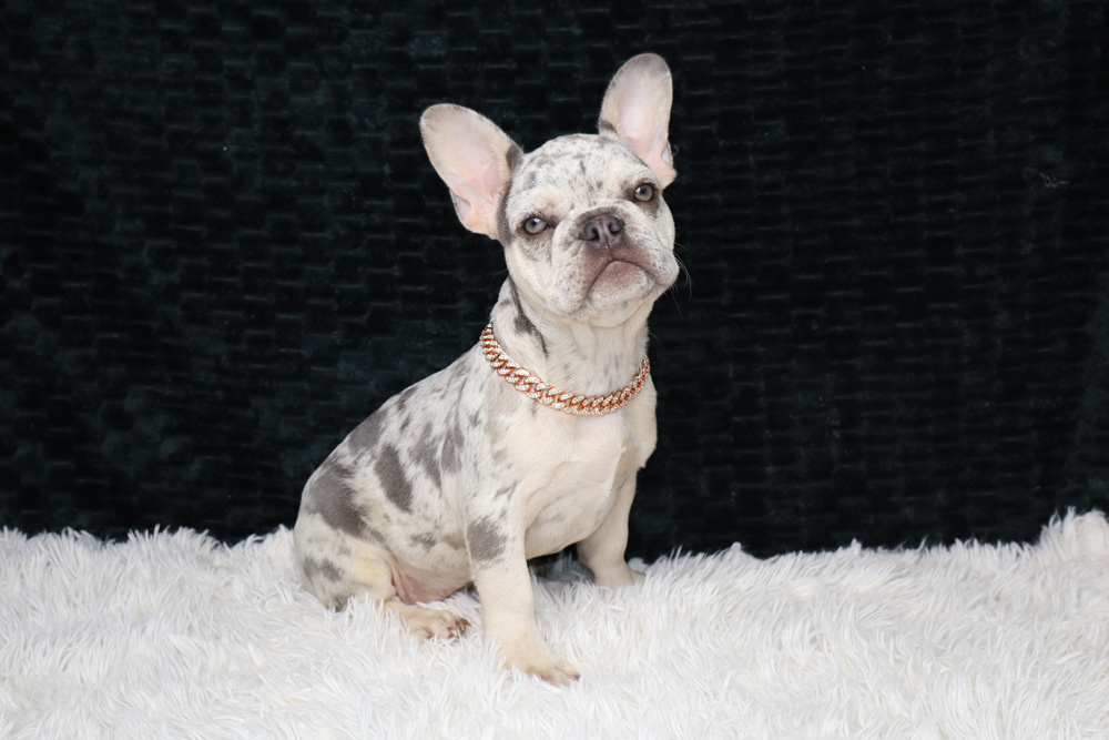 We know that Pearl has a pure heart because her joy is unstoppable even in the face of constant harassment from her siblings! She clearly lives with a ‘water off a duck’s back’ mentality so that her natural positive vibes can keep radiating out of her sweet self no matter what she faces! Pearl yearns to be friends with everyone, is openly affectionate and very demure in her gentle approach to social etiquette and building connection! We love that this girl can be curious and confident yet kind and considerate- so if you are looking for your kid’s first puppy or you were hoping to find a little southern sweetheart type in your next Frenchie- Pearl is the one for you!