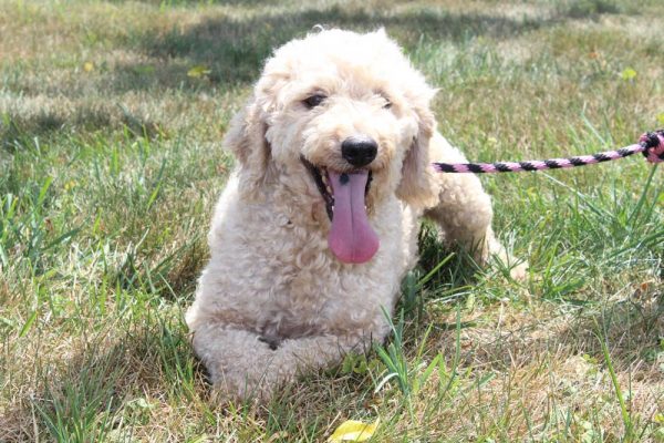 Ginger is a beautiful F1b Mini Goldendoodle Mom. She loves to play fetch as well as have her ears scratched!