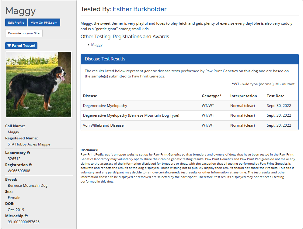 Maggy, the sweet Berner is very playful and loves to play fetch and gets plenty of exercise every day! She is also very cuddly and is a “gentle giant” among small kids.