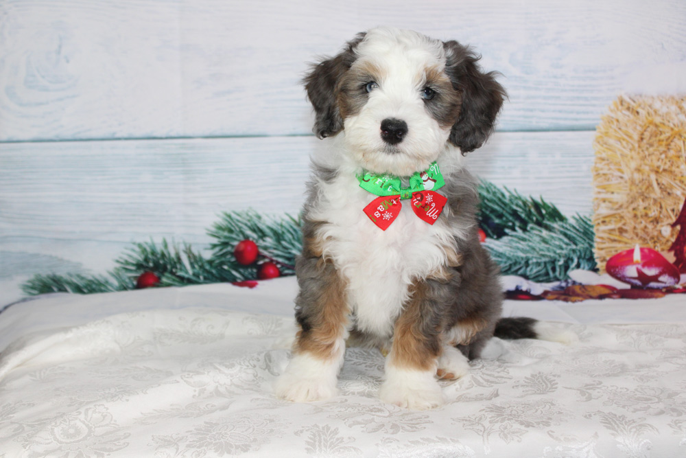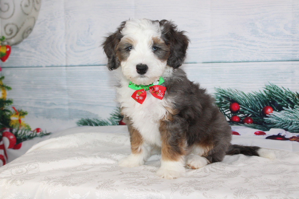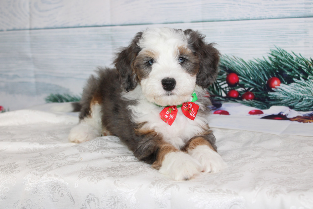 Auggie has gone through Super Dog Training, this is a protocol used to stimulate his senses starting from the second day after he was born up until he is 16 days old. This is also known as (ENS) Early Neurological Stimulation. By gently engaging his senses, his brain goes into rapid development much sooner and he will be able to adapt to changes in his environment more smoothly. The $400 reservation fee is deducted off of the final invoice that is emailed to you after Blue Diamond Family Pups receives your reservation/deposit.