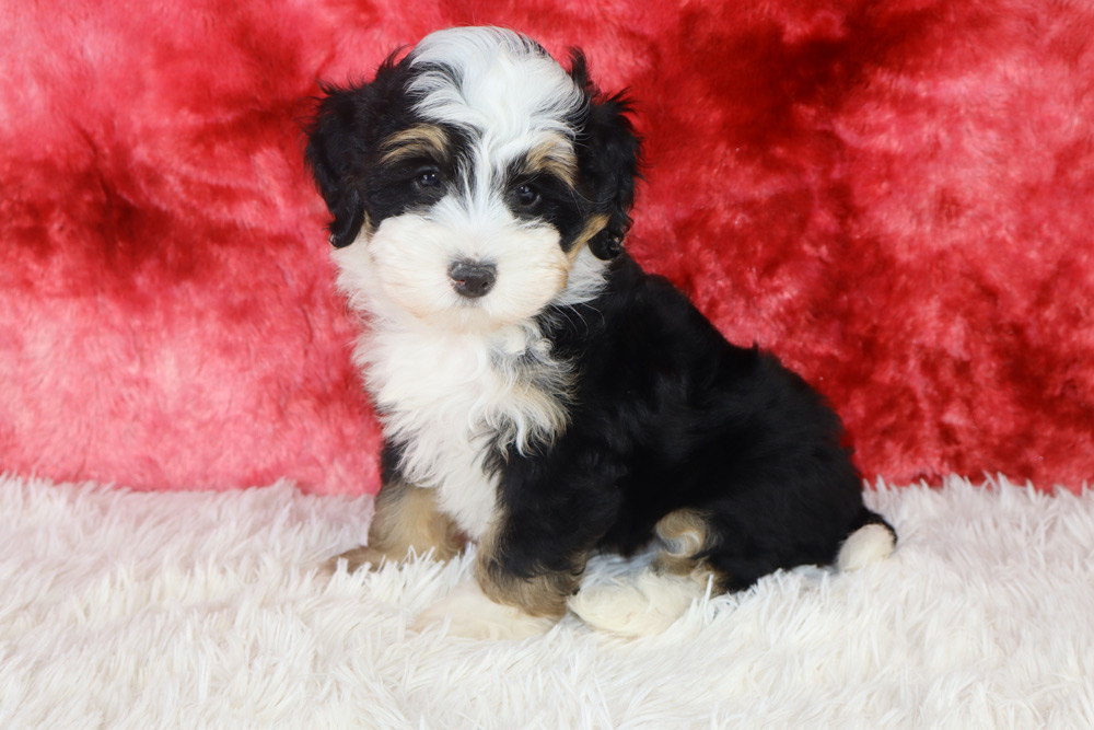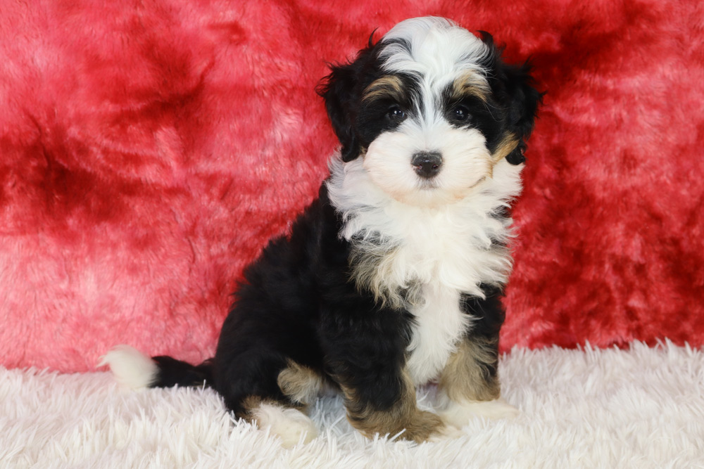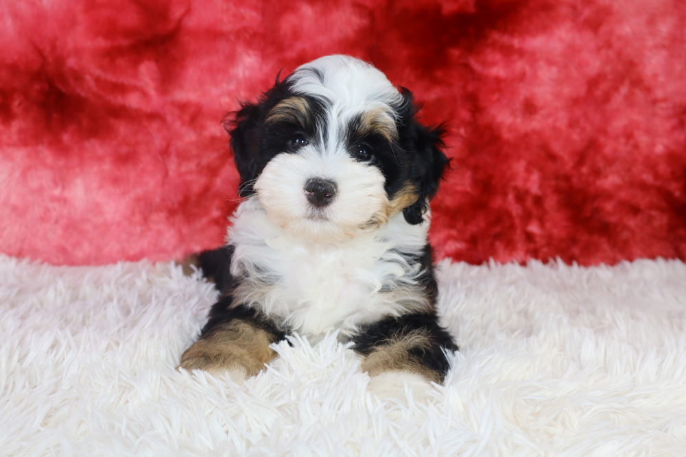 Looking for a big oafie doofus who loves to play and is attracted to anything that makes him happy? Gus is a jolly and willing partner who loves the thrill of a chase even though he is the slowest runner out of the group! He is your quintessential, gentle giant type Leaning into his Bernese mountain dog genetics despite being so small! We love how Gus loyally lays at our feet and keeps quietly reserved when he’s not trying to interject his clumsy self into everyone else else’s antics! If you are wanting a content companion Who has a literal heart of gold- Gus is the guy for you!
