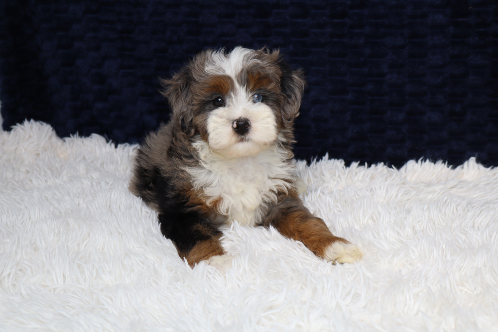 Much like her brother Yukon, Kayla has a pretty easy-going personality who values community and peace over competition and wild antics! Our girl is nerdy and quizzical- keenly observing how the world works and taking mental notes to stash away for a later time when all of the clues and puzzle pieces come together in one big Display of understanding! We love that Kayla is so friendly, but also very calm as if she was born to be a superheroes sidekick who can both pay attention to details or hop into action with a big heart for doing what’s right! If you are looking for a more Bernese leaning temperament That is warm, inviting, and just what you need for these crisp fall days – Kayla is the one for you!