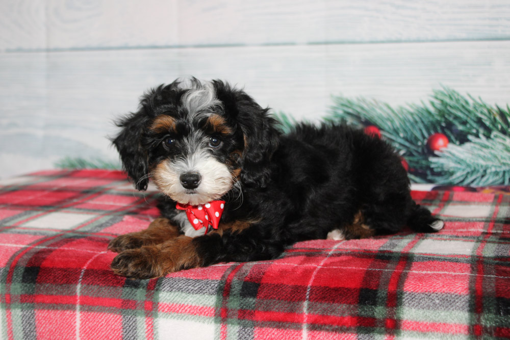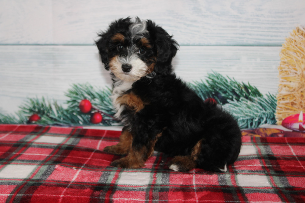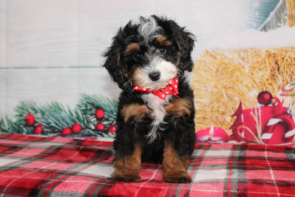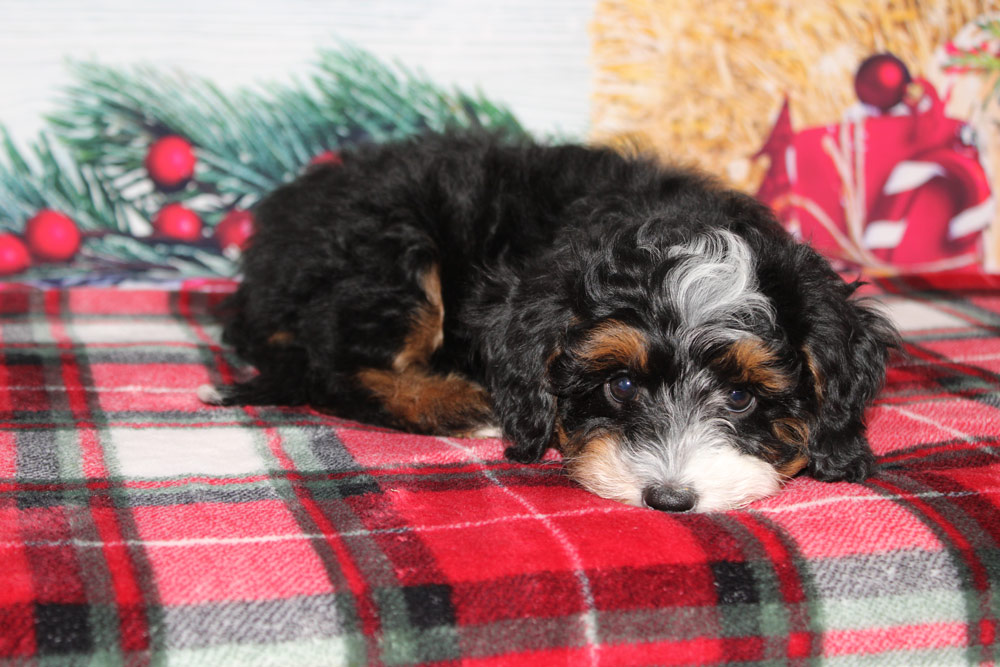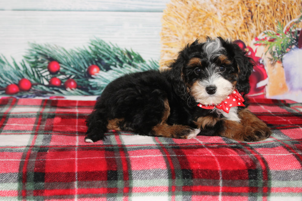 Two parts sweet, one part sassy- Sophie not only has a serious zest for life but she has a big heart too! This girl totally gives us Jessie the Cowgirl vibes from Toy Story- willing, able, ready for play, and has a streak of stubborn but ultimately loves the thrill of camaraderie! Watch her parade toys around the room in hopes of instigating a chase with her siblings, or run with a ball in her mouth with the athletic precision more akin to a poodle than an oafy Bernese! Sophie has a love for connection, isn’t shy about affection, and is willing to be friends with anyone or at least try in hopes of gaining more playmates as well as fans! Don’t be surprised if our pup gets a little desperate for attention or gets a bit competitive from time to time! Despite having many poodle leaning traits- her stamina is more Bernese leaning so these big bursts of joyful fun come crashing down to be a mellow gal pal type! If you are hoping for adaptable, kind, smart, and spunky- Sophie is the one for you!
