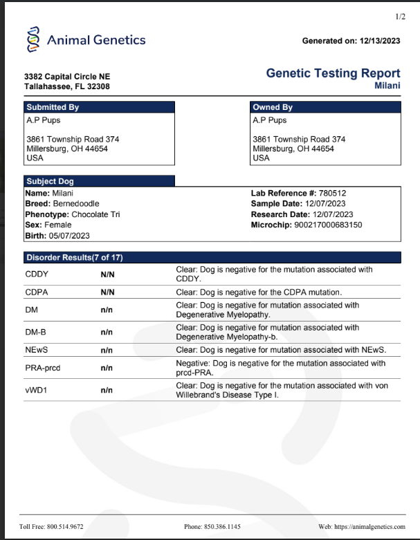 Milani is a Mini Bernedoodle with a very gentle and easy going personality.