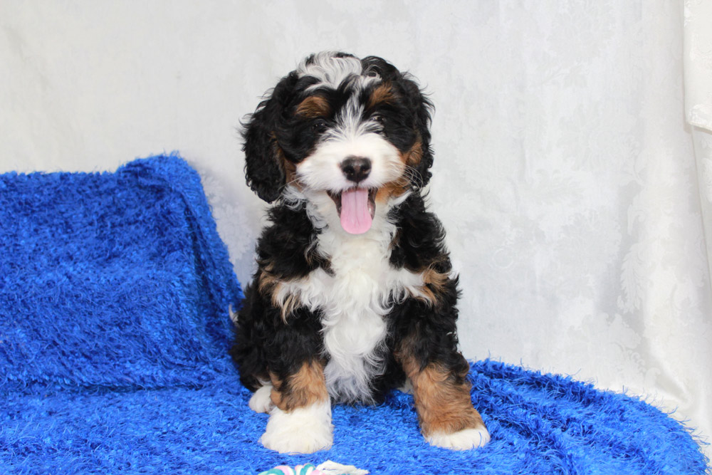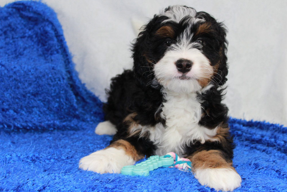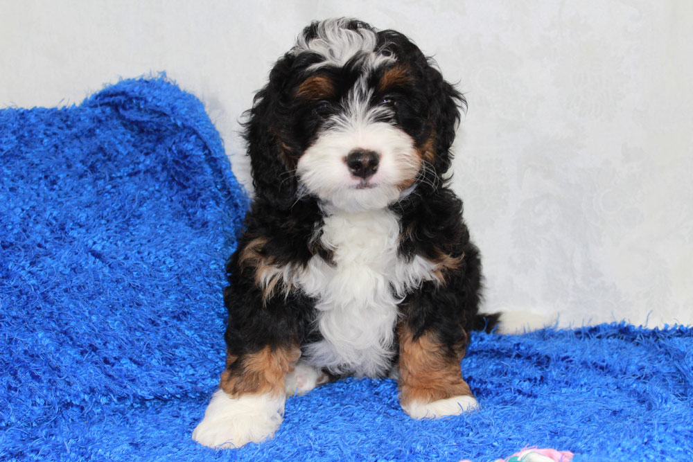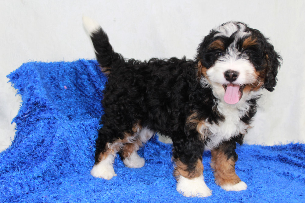 Barney is a handsome tri colored Mini Bernedoodle puppy. He has the sweet and gentle personality of a Bernese Mountain Dog as well as the intelligence of a Poodle