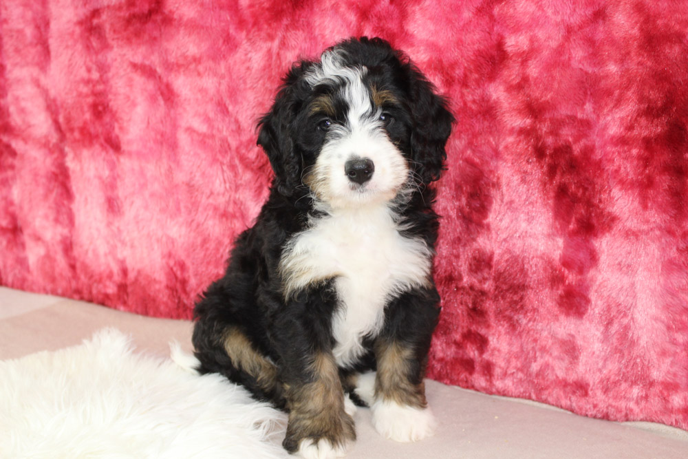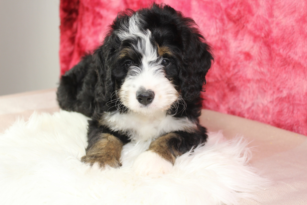 There is nothing clownish about our boy Bozo- he acts more like he’s living in a Mission Impossible movie- on the hunt for curiosity-inducing clues, adrenaline filled action, yet has a ‘drive-by’ style of randomly giving affection as he’s in the middle of his mission to keep the plot line interesting! Once his task is done- he taps into his typical Bernese side that loves to lounge and be lazy. We hope Bozo finds his next assignment in a family full of kids who will include him as one of the characters in one of their make-believe adventures!