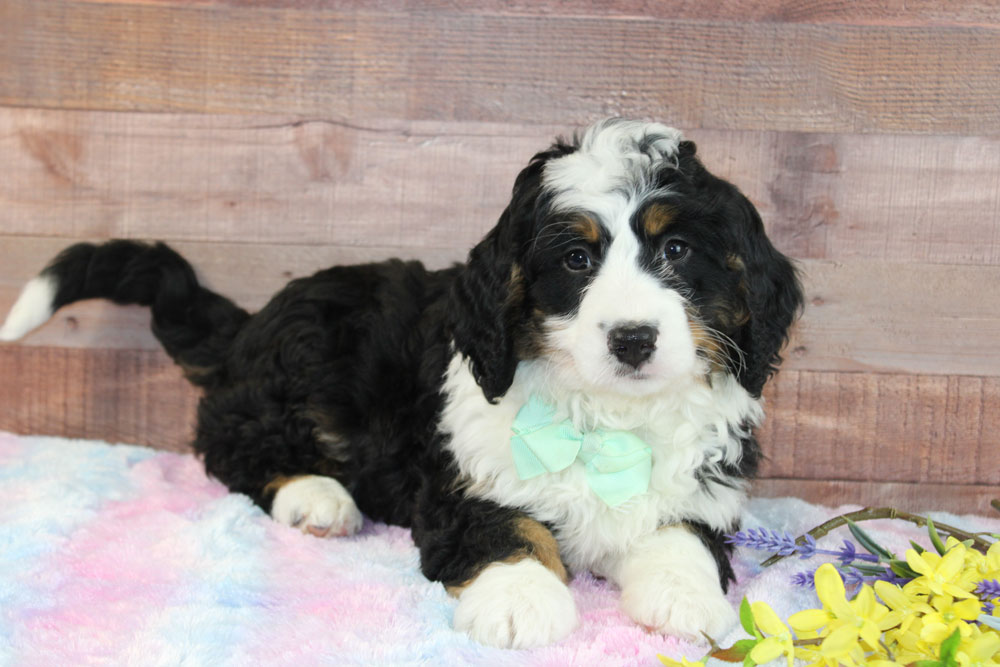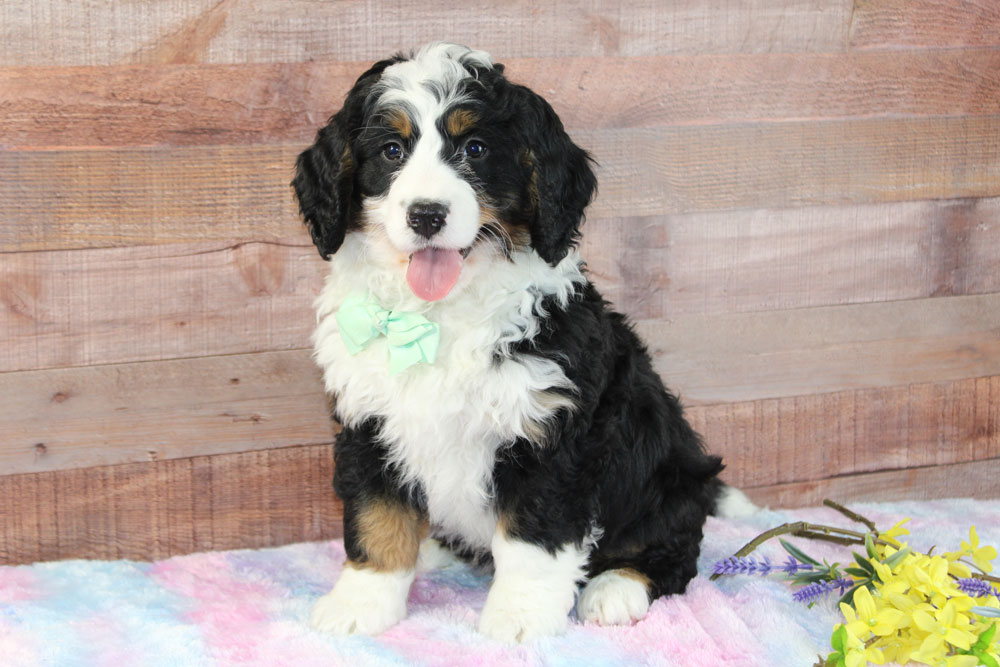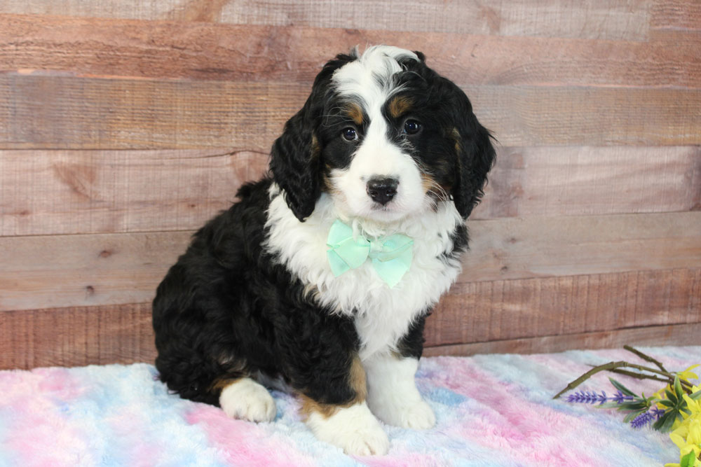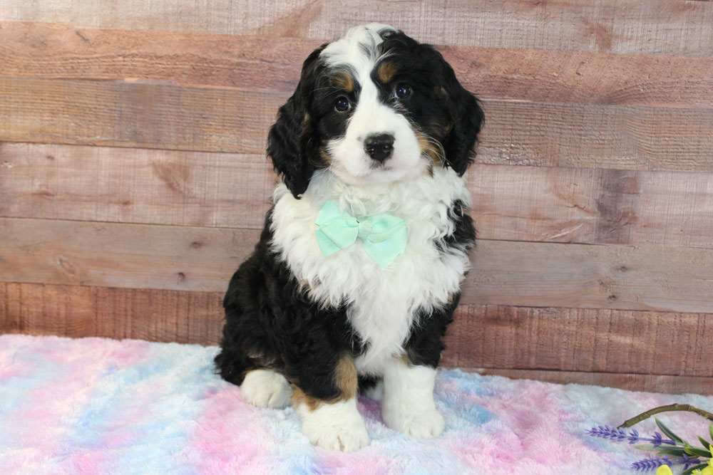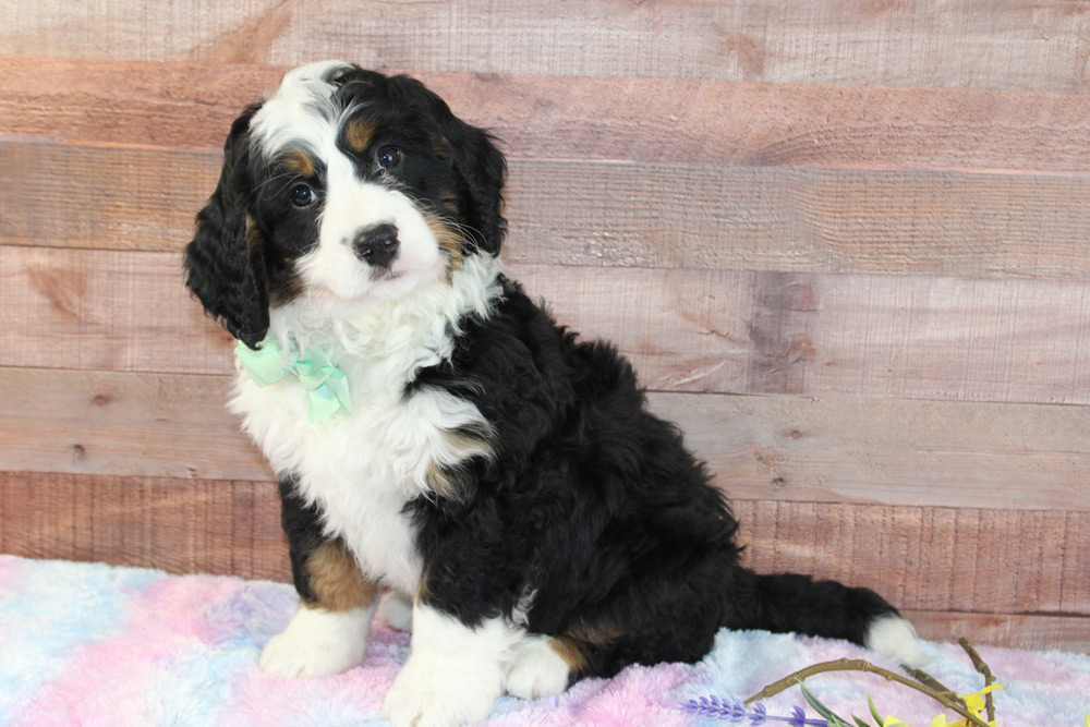 If David Hasselhof had a Bernedoodle on the beaches of Baywatch- Bryant would be his canine cohort in fighting California coastline drama! This boy gives us all kinds of lifeguard vibes- stoically keeping watch of all of his siblings but not being to dramatic about protecting them- just his presence alone is enough to make them feel secure. Bryant knows what it means to be a gentle giant and does so with a happy silliness about him. Bryant will come built in with some determined stubborn streaks but overall he’s a go-with-the-flow type of dog that should be the mascot of a surf club in San Diego. If you are looking for a chill dude who can ride through life’s dramas and doldrums- Bryant is the boy for you!