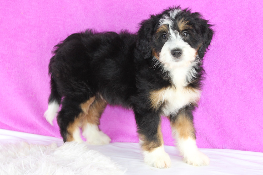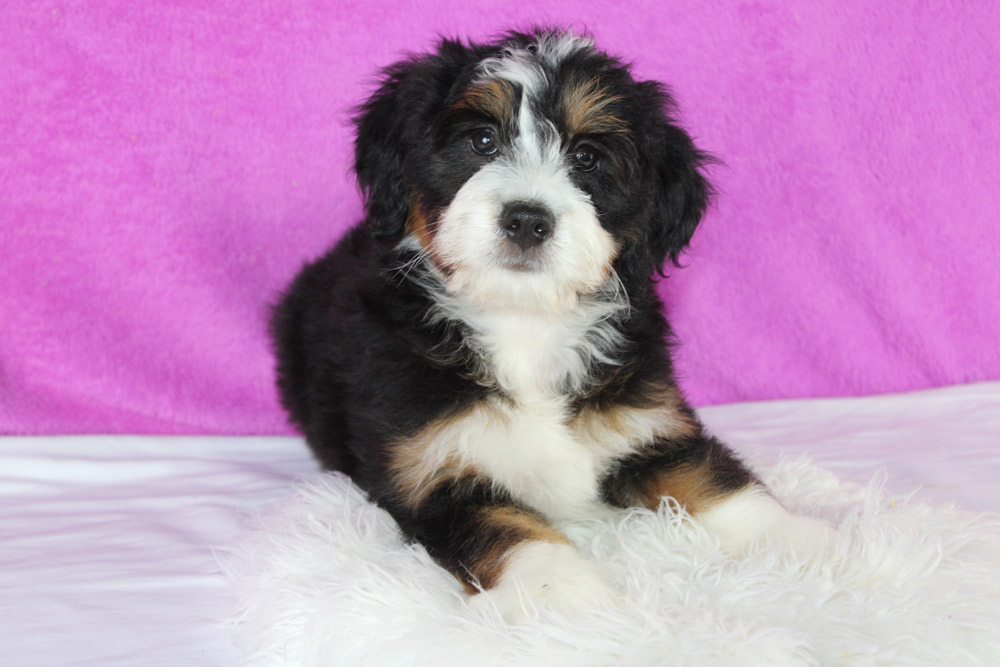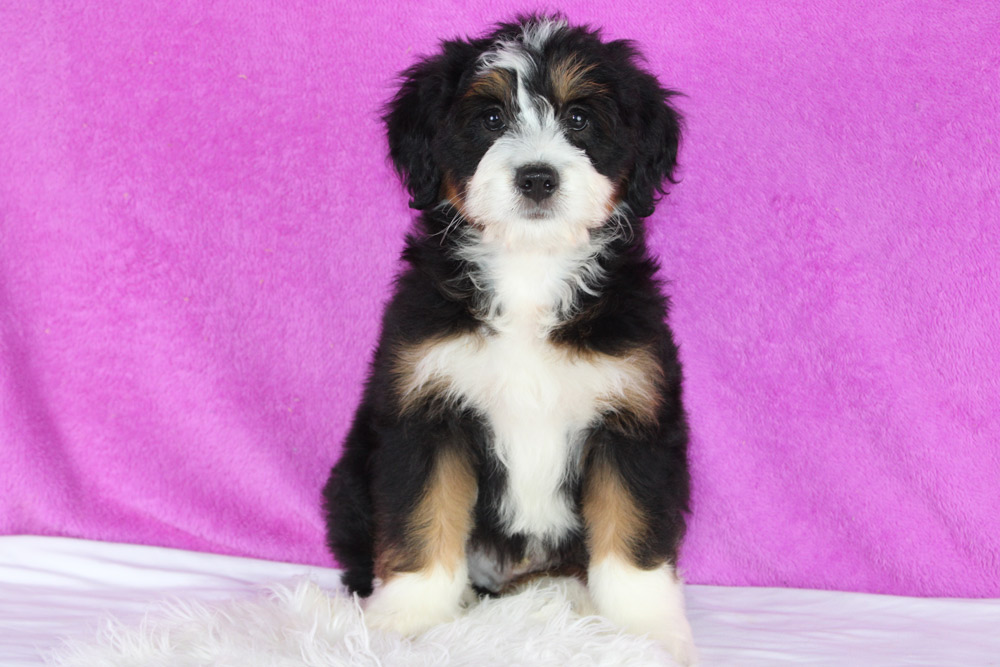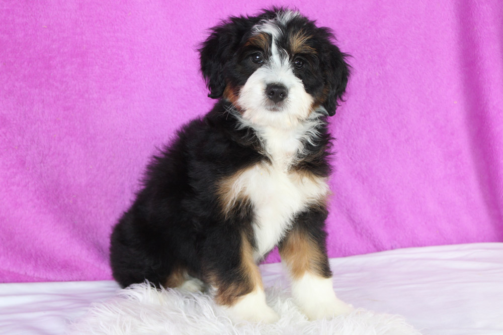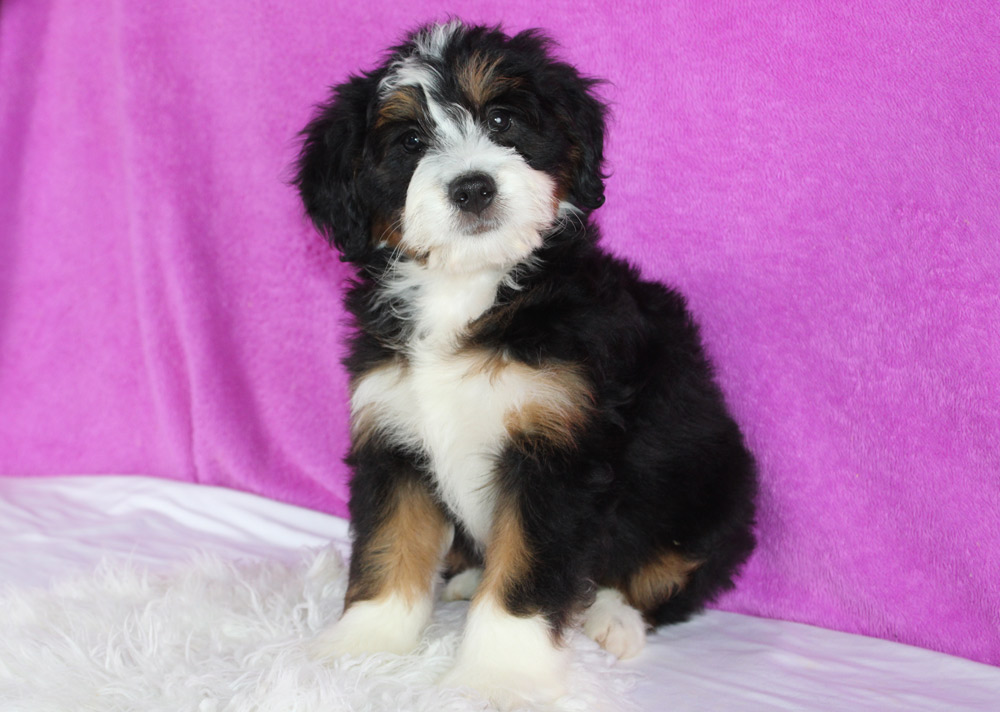 The most mellow pup among his littermates, Bryce acts years beyond his current age perfectly content being more of a spectator than a vivacious participant! If he does choose to engage, Bryce is always the last one to run falling behind with his oafy bernese gate and his lack of competitiveness vs. his joy to participate! We love his calm friendly demeanor that will steadfastly lay and play in the middle of chaos rather than be influenced or stressed by his swashbuckling siblings! Bryce is a simple man who doesn’t need a plan- lazy relaxation is the name of the long game! Whether you have a home full of crazy kids or living a newly retired yet mildly active life- Bryce is ready to hang through the highs, the lows, and everything in between.