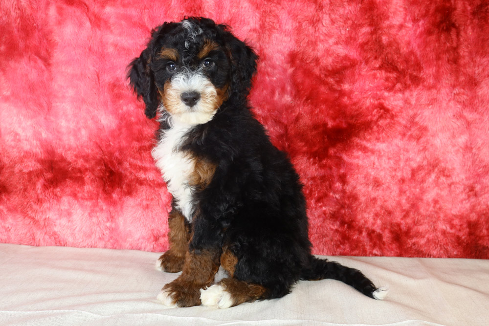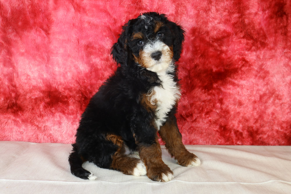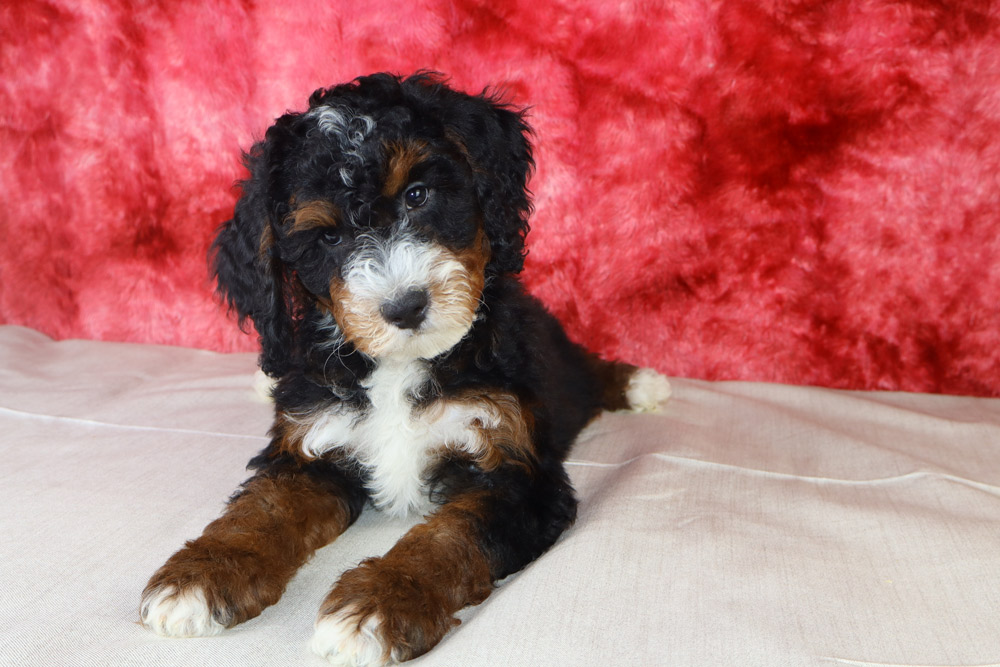 One part super hero and one part lazy couch potato- Cody seems to be the perfect splice between the quick athletic smarts of a poodle and the easy-going vibes of a Bernese! He is bold and can be a bit naughty as he instinctually inspects boundaries- but is easy to correct and redirect so expect him to learn real fast what is expected of him! Cody loves the mental escape and imagination-building his toys offer him- but deep down in his heart he prefers camaraderie and playmates who can go from mutual mellow hang outs to zipping into spirited action when the inspiration suddenly arrives! We love that Cody is so affectionate, confident, and smart but doesn’t come off as dominant or selfish! If you are looking for the perfect splice between spirited and calm, friendly and independent, and an excellent candidate for being the best friend you’ve ever had- Cody is the one for you!