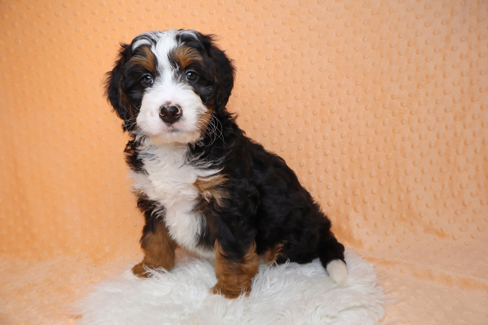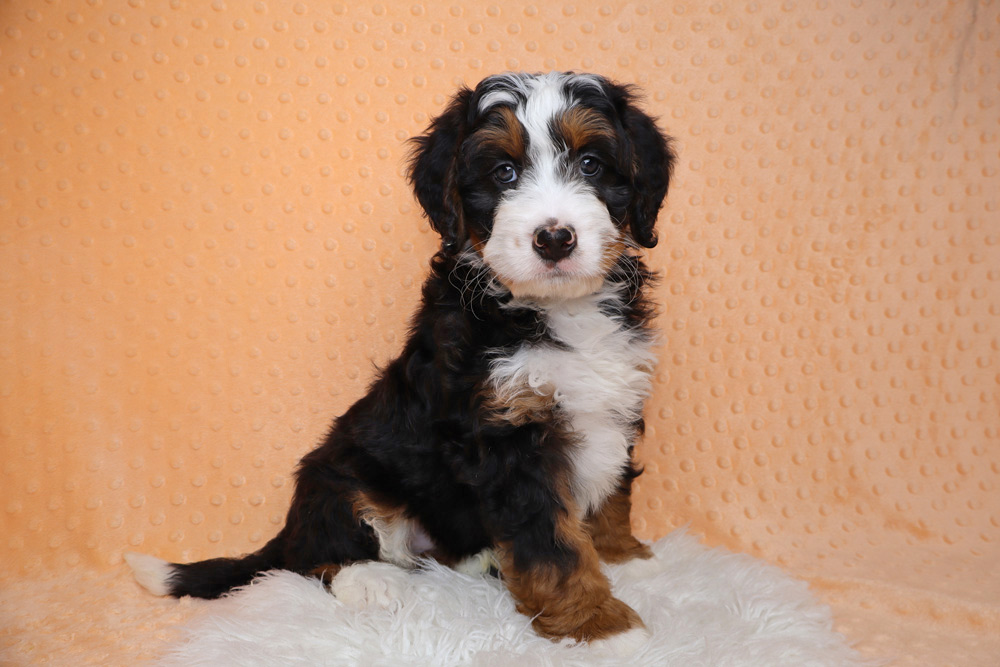 If you enjoy the sense of propriety of an English gentleman peppered with some streaks of a classic American cowboy- Drake is the kind of dog who has the vibes of both sides of the pond! We love how he is caring, contemplative and patient to make his siblings feel like they have an intentional yet submissive friend- but he has the gumption and willingness like a scout ready to hunt for adventure too! Drake has an enchanted curiosity and quizzical love for learning so expect a smart and intuitive companion who will lovingly adapt to his family with pure fondness in his heart! Whether you are looking for your first Bernedoodle puppy or looking for a humble friend for an existing dog in your pack- Drake is ready to be your bestie!
