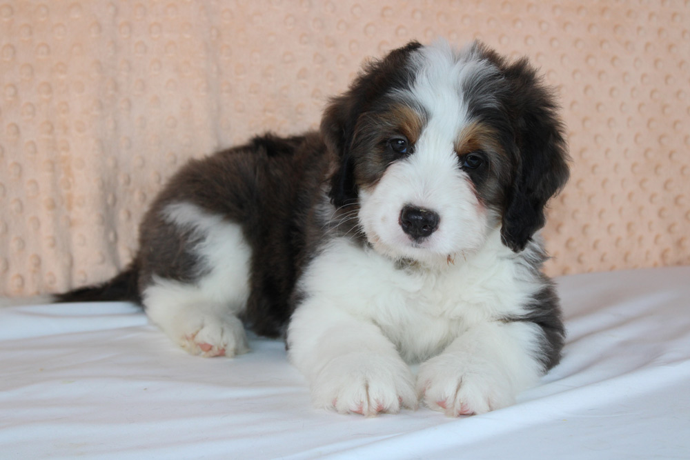 If the kennel was a carnival- Elroy would be the resident contortionist! He takes those loungy bernese mannerisms to a whole other level slithering his way over and under and around objects driven by his curiosity and laziness combined! We love his heart to protect those he loves but he also will be quick to snatch a toy when his siblings aren’t paying attention! Elroy is well loved by his littermates despite being a bit of stinker at times! This puppy is looking for a family who live a balanced life of lazy and play- but are quick to pick up on his smarts that usually have good intentions but may push the boundaries to get his way! Experience with dogs would be best- but we’re confident Elroy could easily morph into being a great first dog as well!