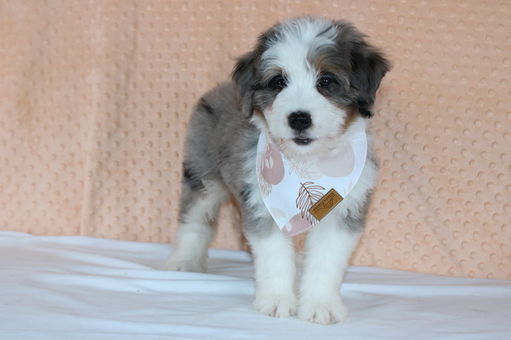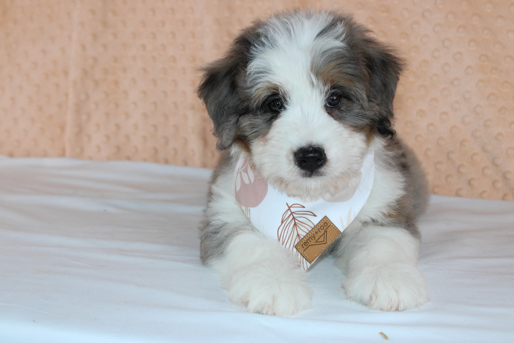 There’s always a sibling who is always different than the others and for Emmaline she’s Audrey Hepburn starring in Breakfast at Tiffany’s living amongst the School of Rock cast being influenced by a few Jack Black-type characters! She belongs in the upper east side of Manhattan- prim, proper, and put together full of independent feminine energy while having to navigate living with siblings who should be taking their jeeps off roading in the middle of Arkansas! Emmaline knows what she wants, has boundaries, and is one who will make you earn her trust and respect before giving her heart away! Our girl particular and currently disdains feeling like humans are the ultimate puppy paparazzi! Emmaline is looking for a family with older kids or a single person who lives a posh, prepared, and peace-filled life that believe in treating their puppies like princesses rather than a constant playmate to the kids!